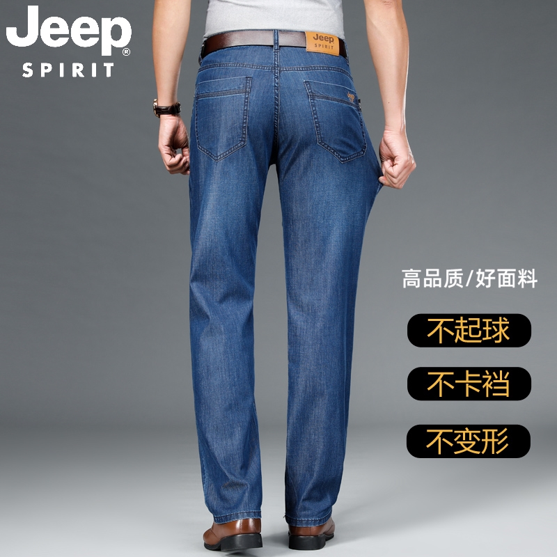 吉普天丝休闲牛仔裤男夏季薄款宽松直筒爸爸中年超薄冰丝长裤