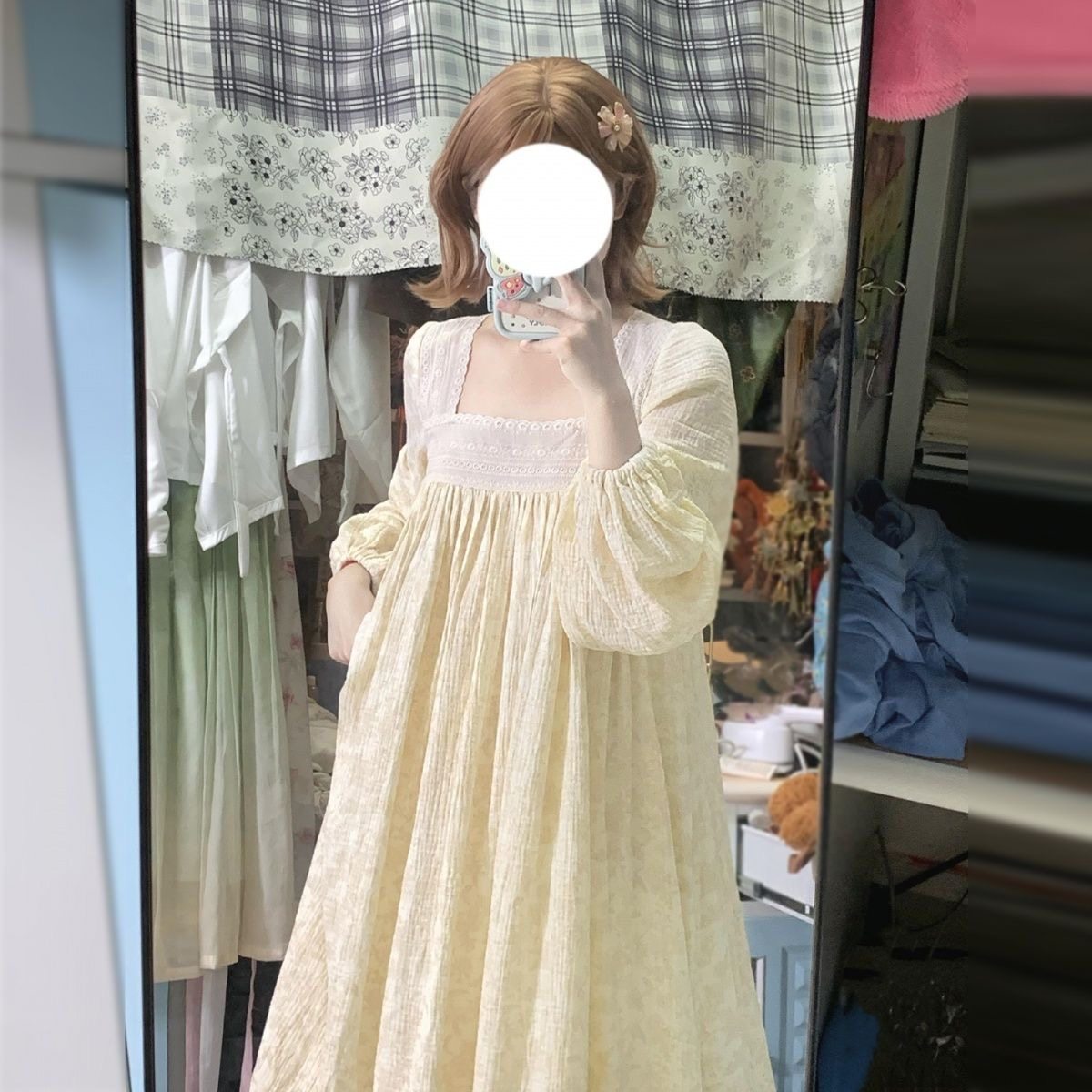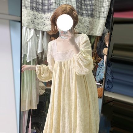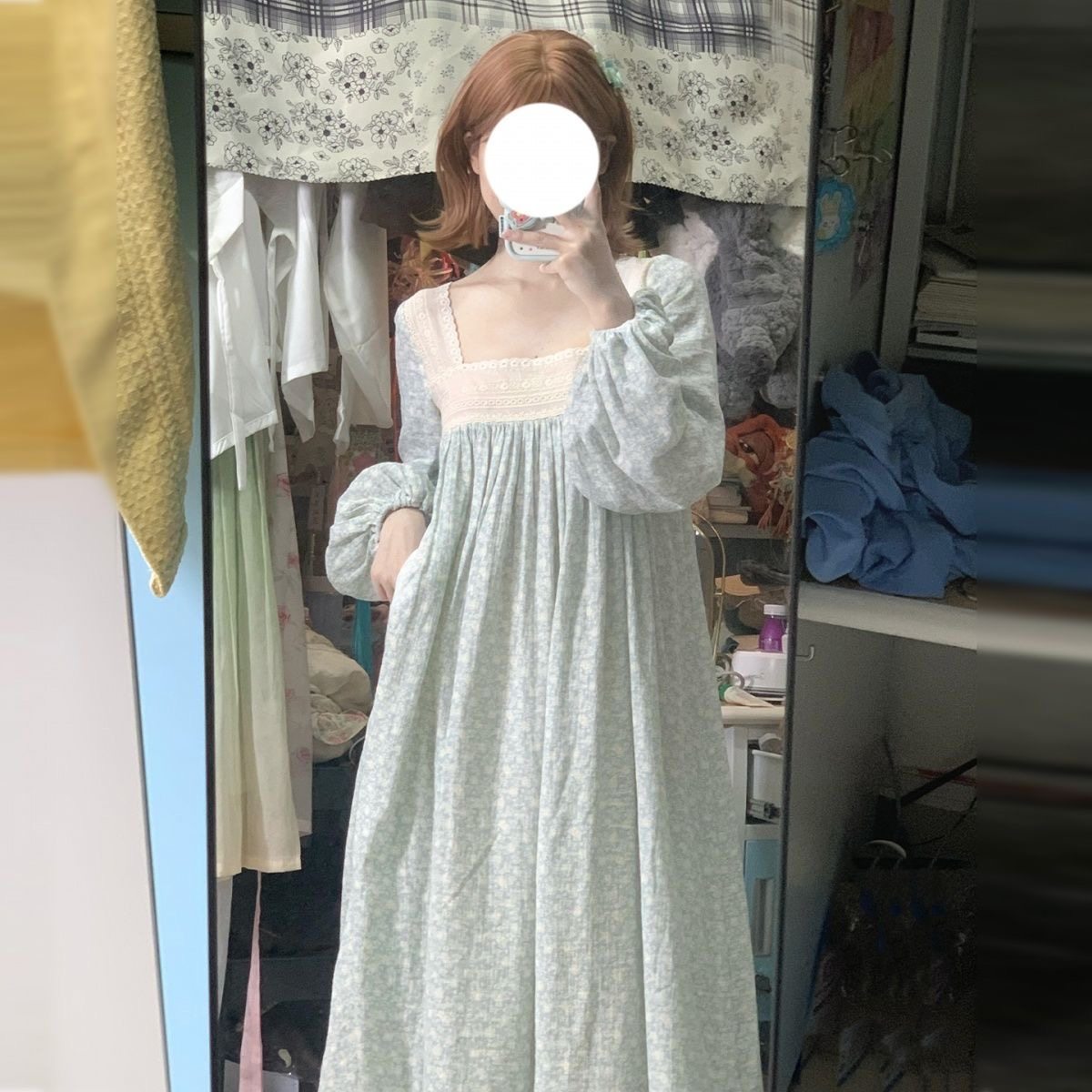 特大码胖MM温柔浪漫睡裙蕾丝碎花法式春秋长袖连衣裙外穿长款睡衣