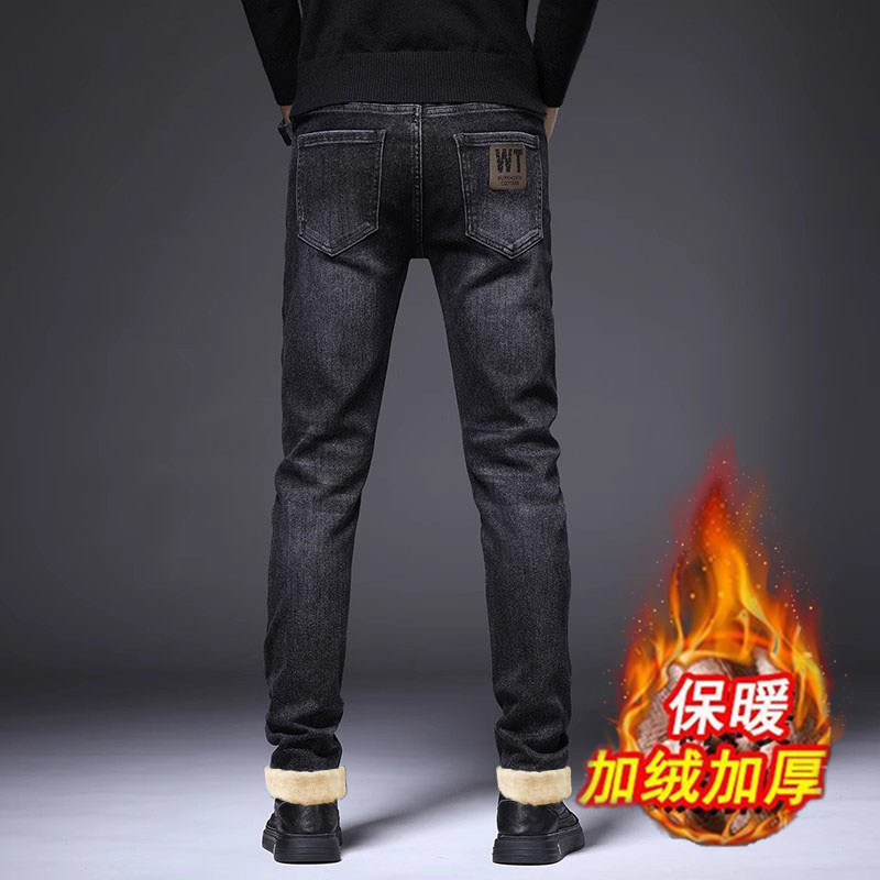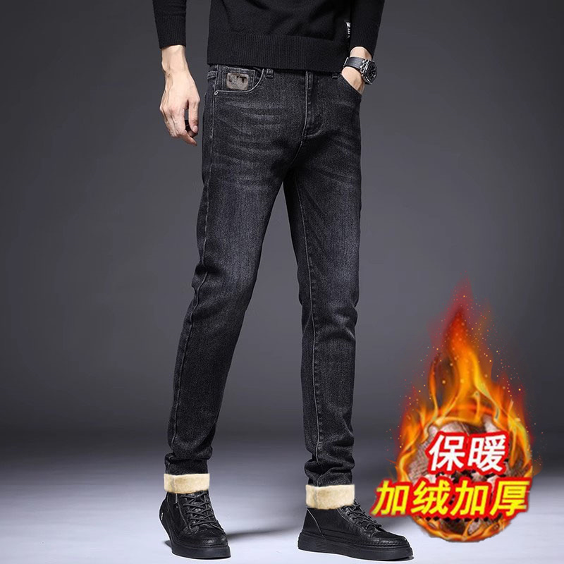 2025新款高端黑色牛仔裤男修身小脚加绒加厚长裤子男士百搭休闲