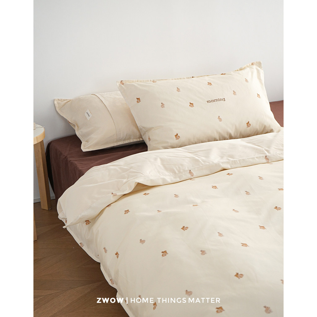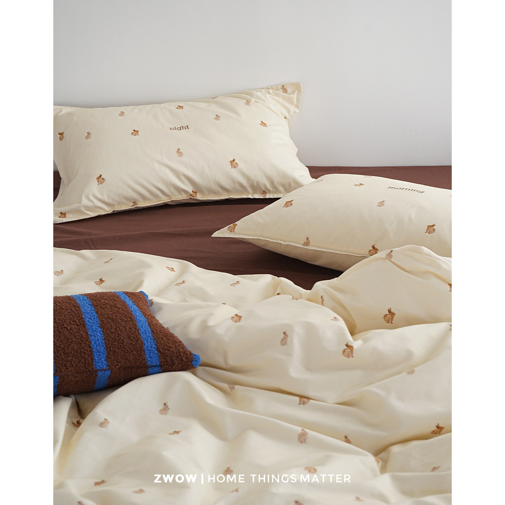 造卧zwow100高支高密长绒棉磨毛可爱风兔子儿童房被套床上四件套