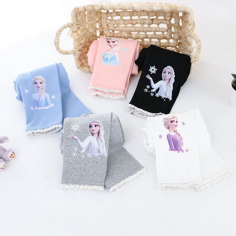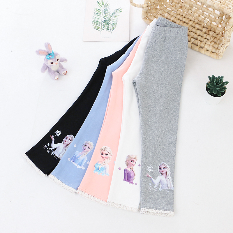 女童纯棉弹力花边长裤外穿打底裤