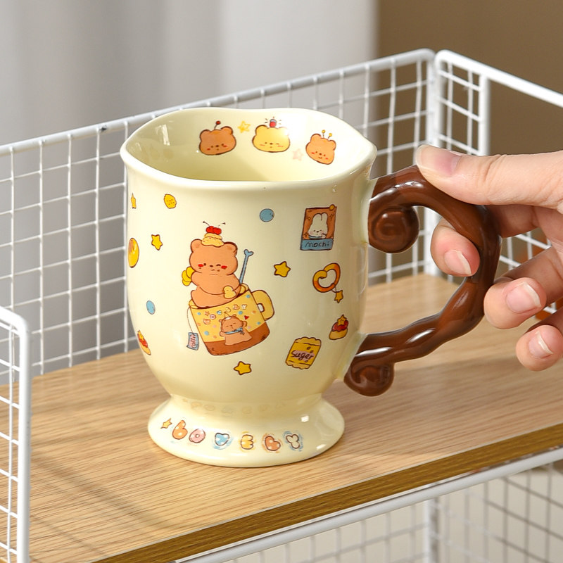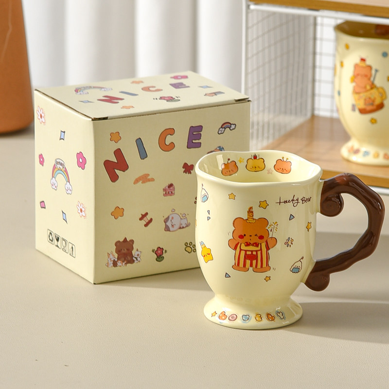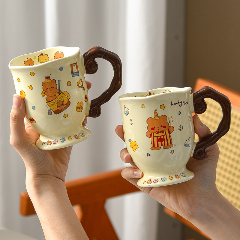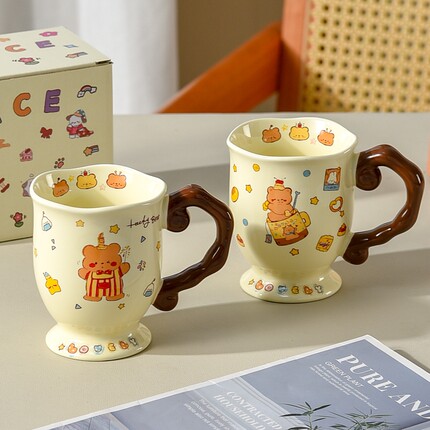 小熊陶瓷马克杯大容量喝水杯子高颜值生日礼物喝水杯子办公室卡通