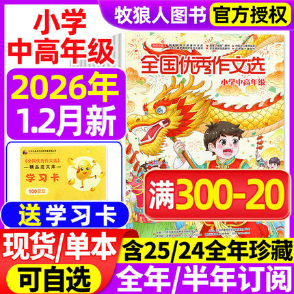 全国优秀作文选小学中高年级版杂志2026年1-2月/2025年1-12月【全年/半年订阅/2024年1-12月】三四五六年级素材与考试非过刊