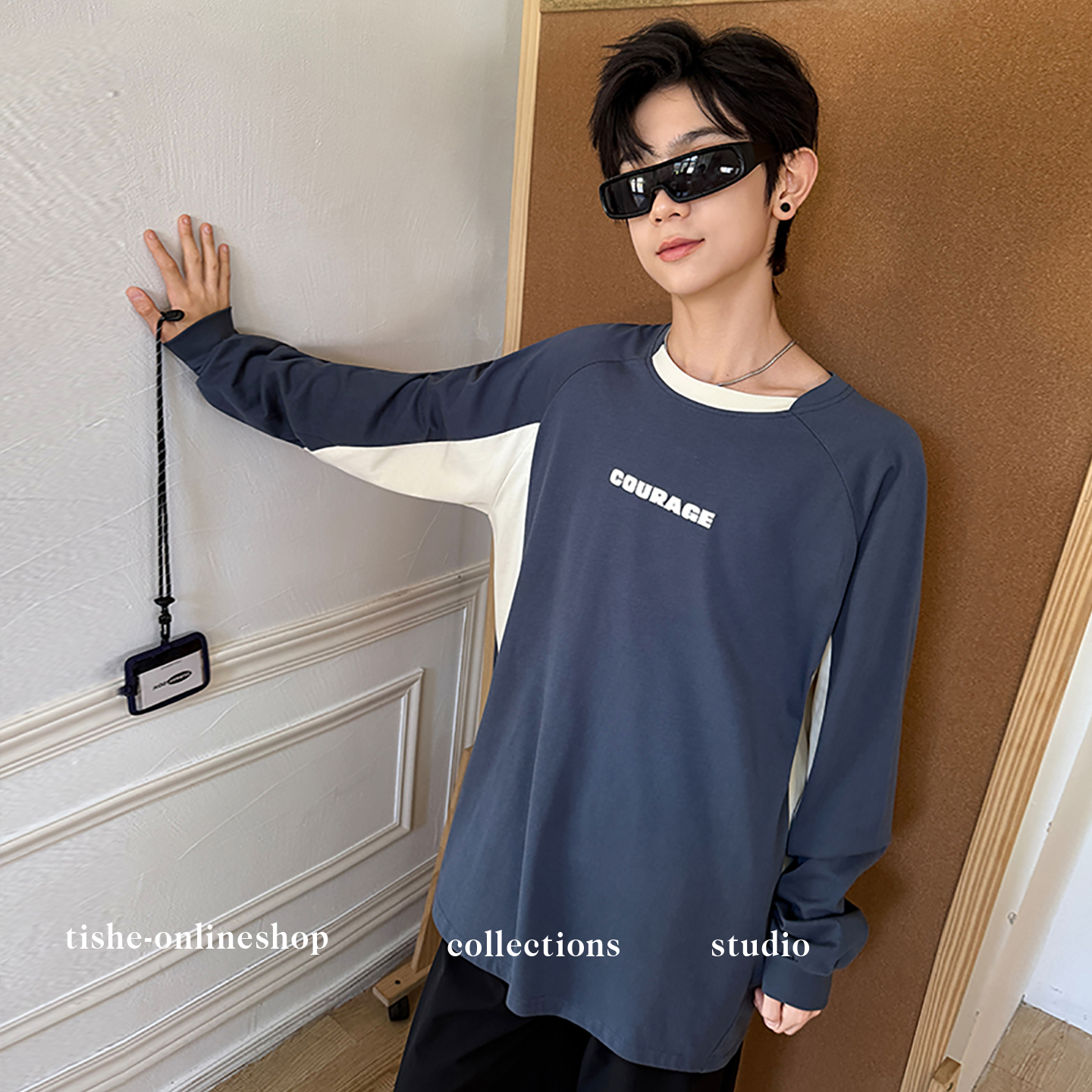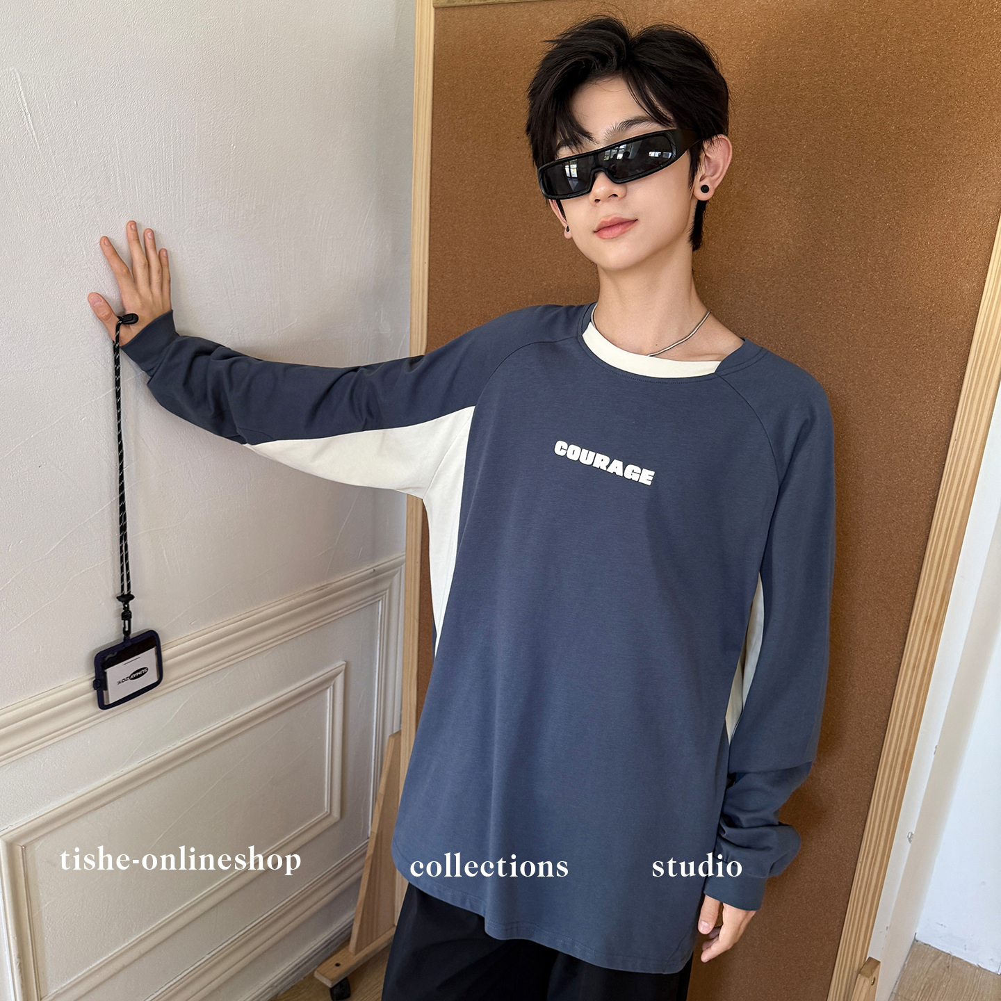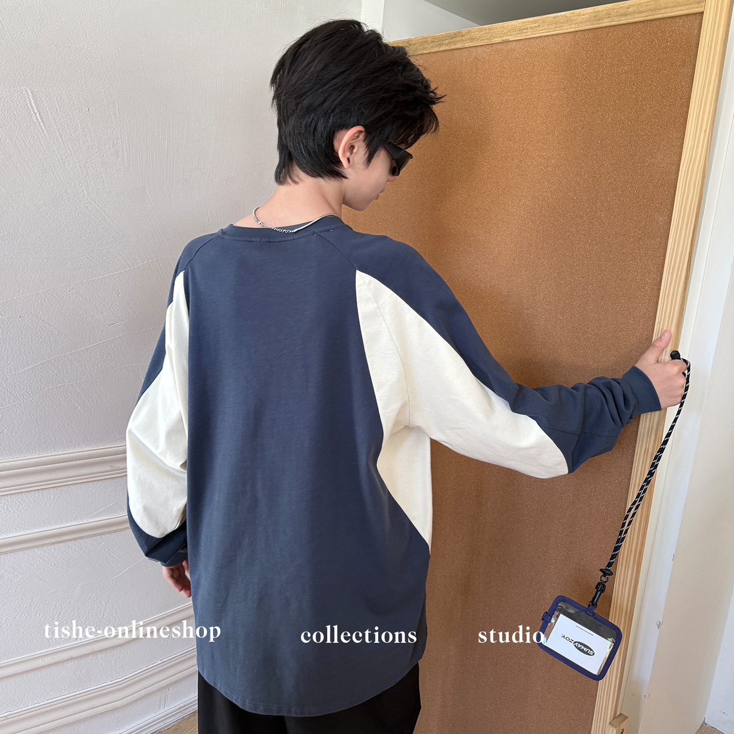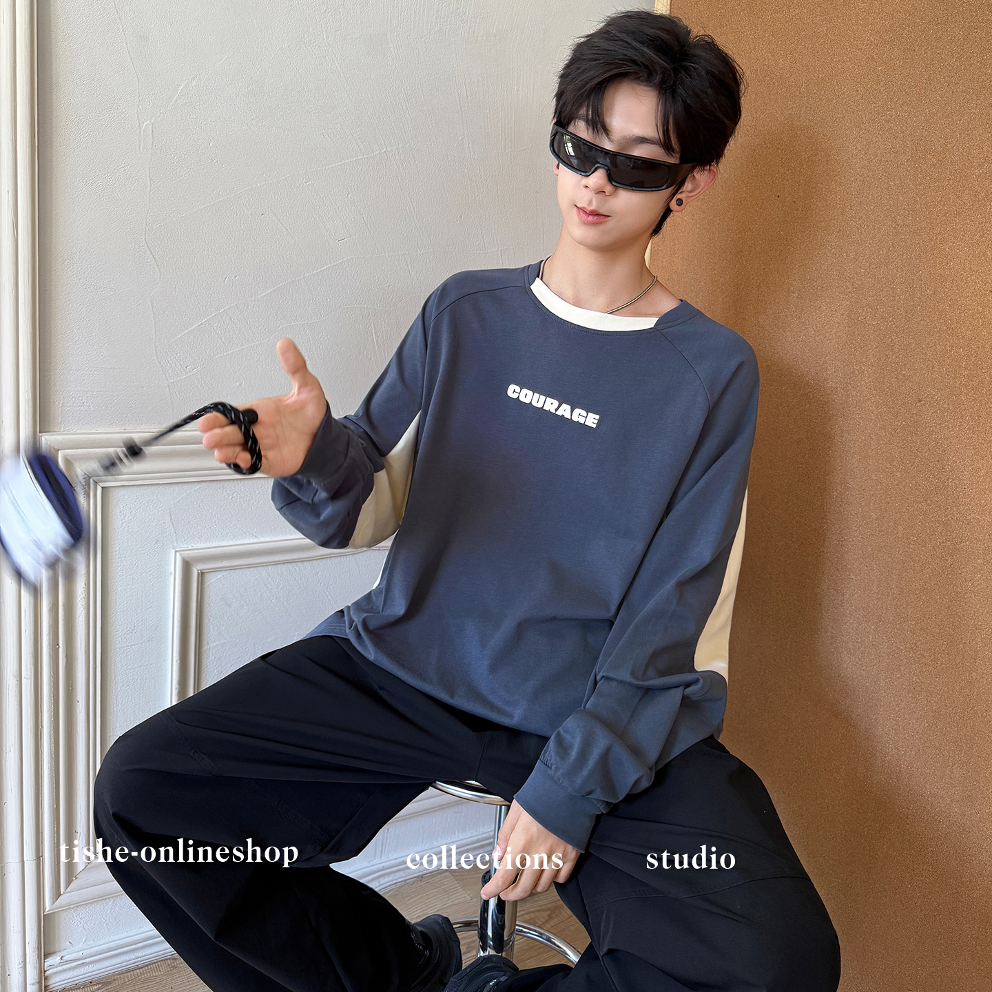 男童长袖t恤春秋款中大童纯棉宽松骑行服青少年运动撞色打底衫潮8