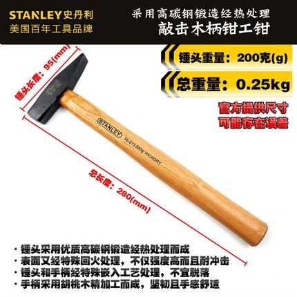 史丹利 木柄钳工锤 200g 300 400 500 鸭嘴小铁锤 敲击 榔头锤子