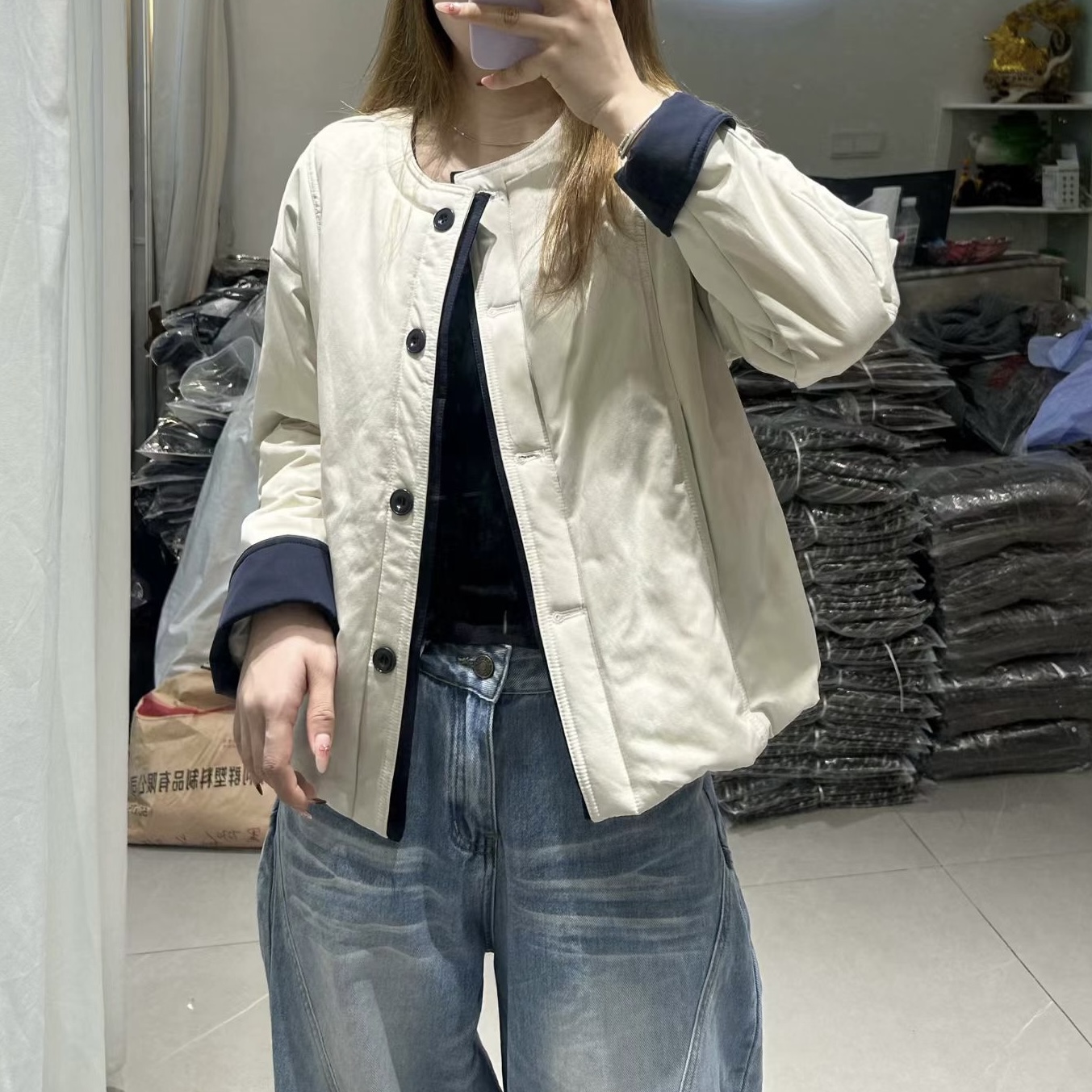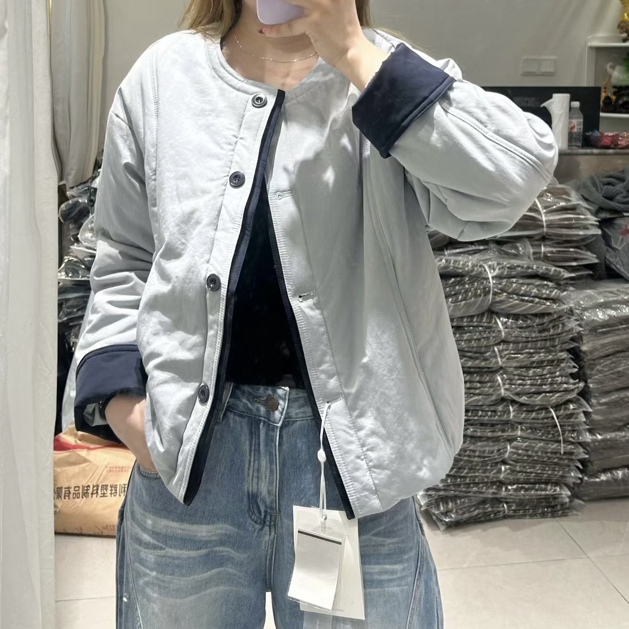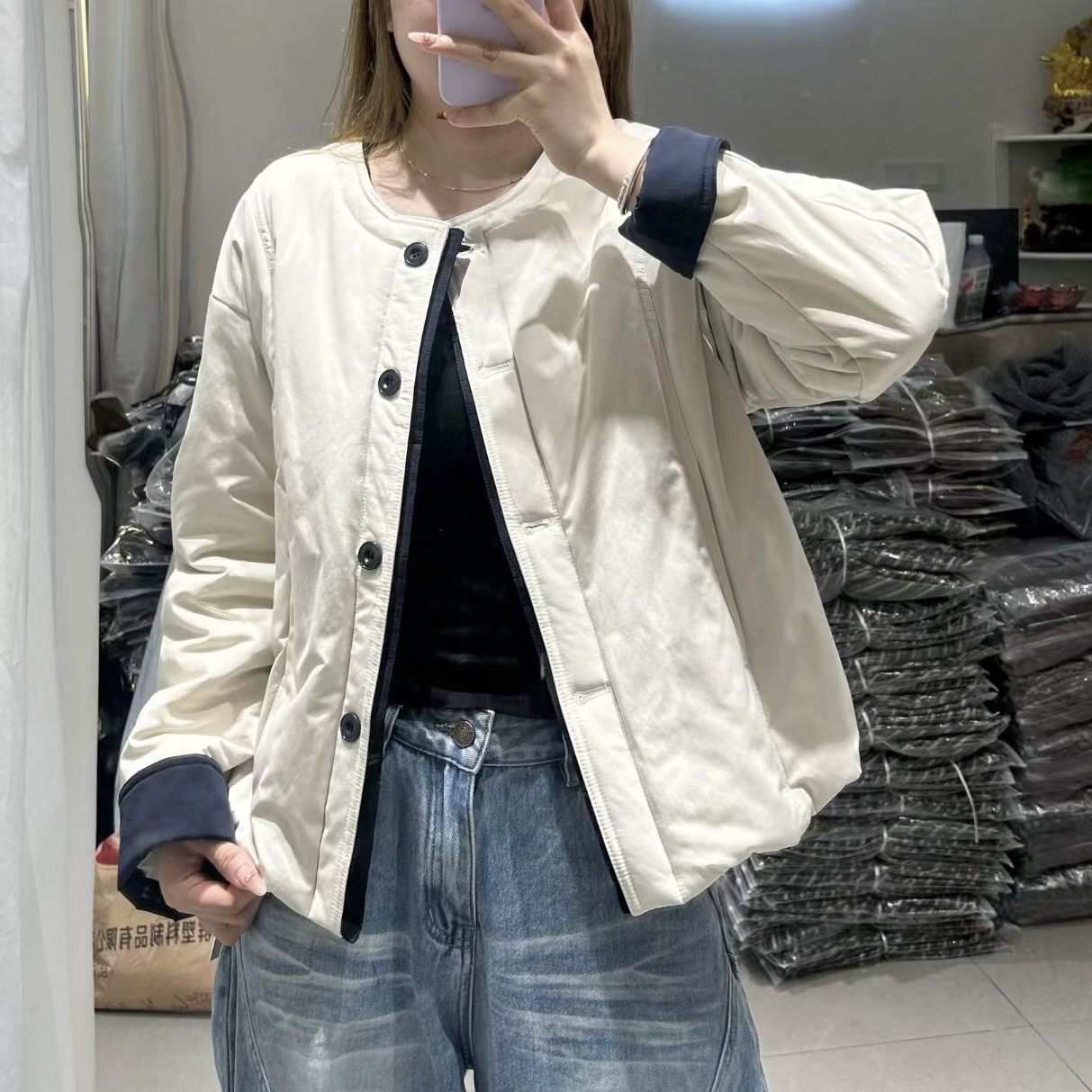 2025秋冬新款撞色拼接棉服外套女夹棉韩版休闲宽松加厚短款小棉袄