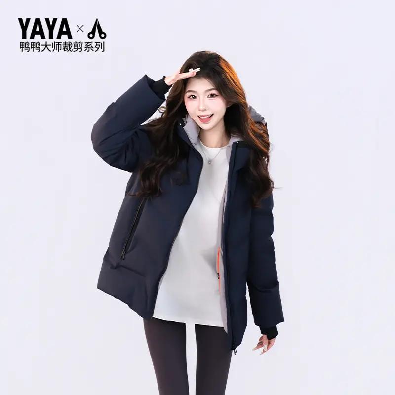 鸭鸭工装风羽绒服女2025新款短款连帽小个子百搭气质户外保暖外套