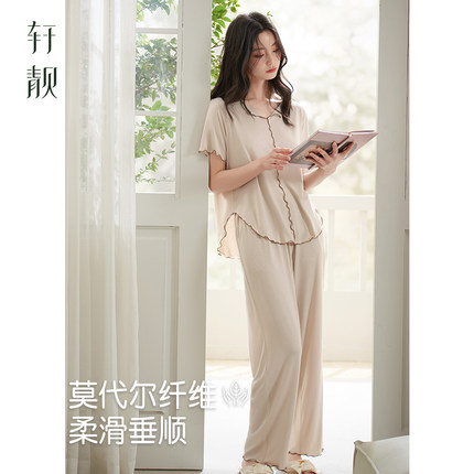 轩靓睡衣女夏季薄款莫代尔短袖长裤休闲时尚可外穿大码家居服套装