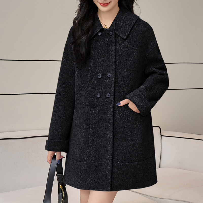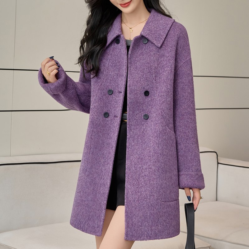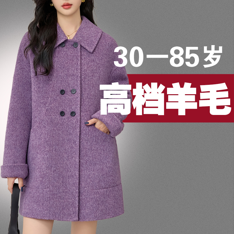 高级感紫色双面绒羊毛大衣女中长小个子2025秋冬新款厚实毛呢外套