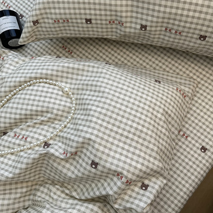 格子熊纯棉床单单件全棉被套枕套床笠被罩格子可搭三四件套可定做