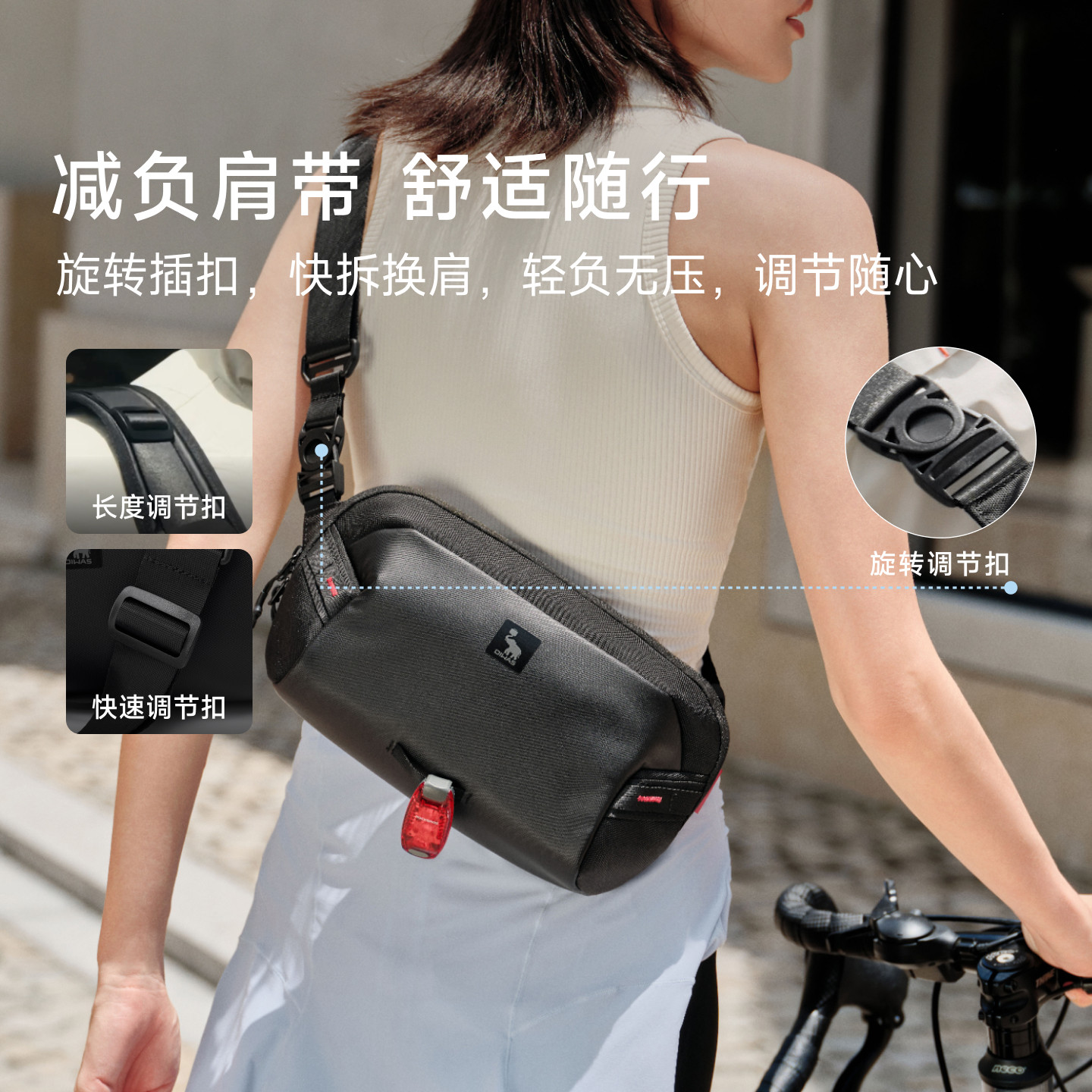 爱华仕象影系列X1mini斜挎包单肩包男运动多功能胸包腰包旅行包女