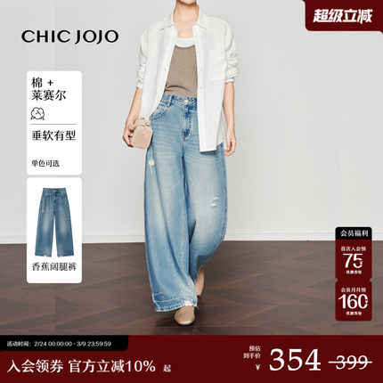 【倦系丹宁】弯刀裤丨CHICJOJO牛仔裤女26春新款水洗破洞香蕉裤