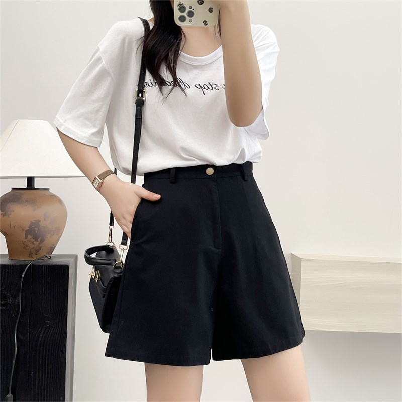 惠衣阁夏季女棉质高腰短裤西装裤韩版宽松休闲裤西装阔腿裤小码
