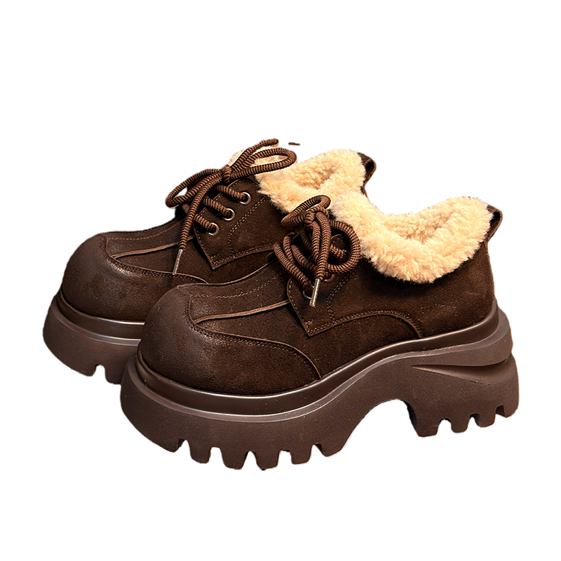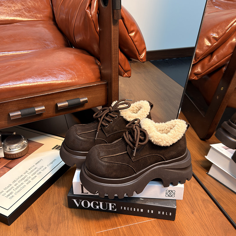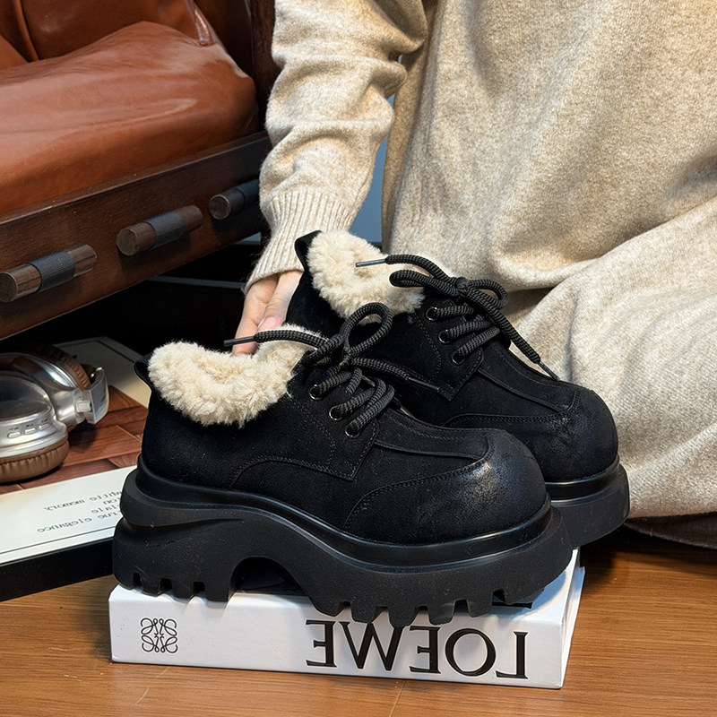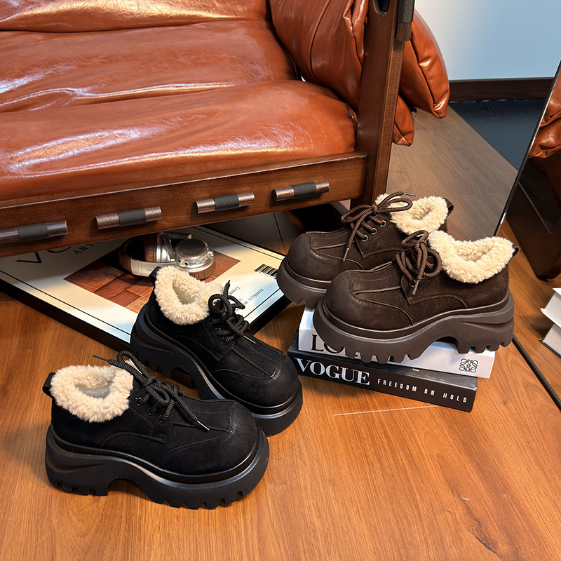 复古真皮松糕厚底加绒乐福鞋