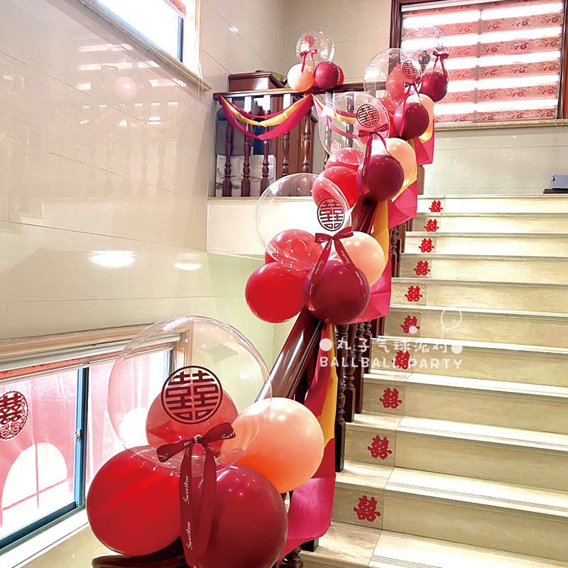 结婚楼梯扶手装饰婚庆用品婚礼婚房布置纱幔彩带拉花喜字气球套装