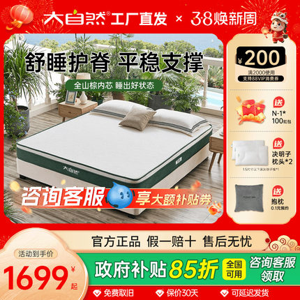 大自然棕榈床垫山棕偏硬垫护脊1.5米天然乳胶床垫儿童席梦思 雅静