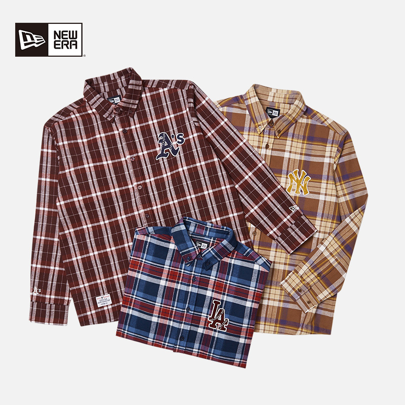 New Era纽亦华秋冬新款MLB格子衬衫NY外套复古学院文艺休闲潮男女