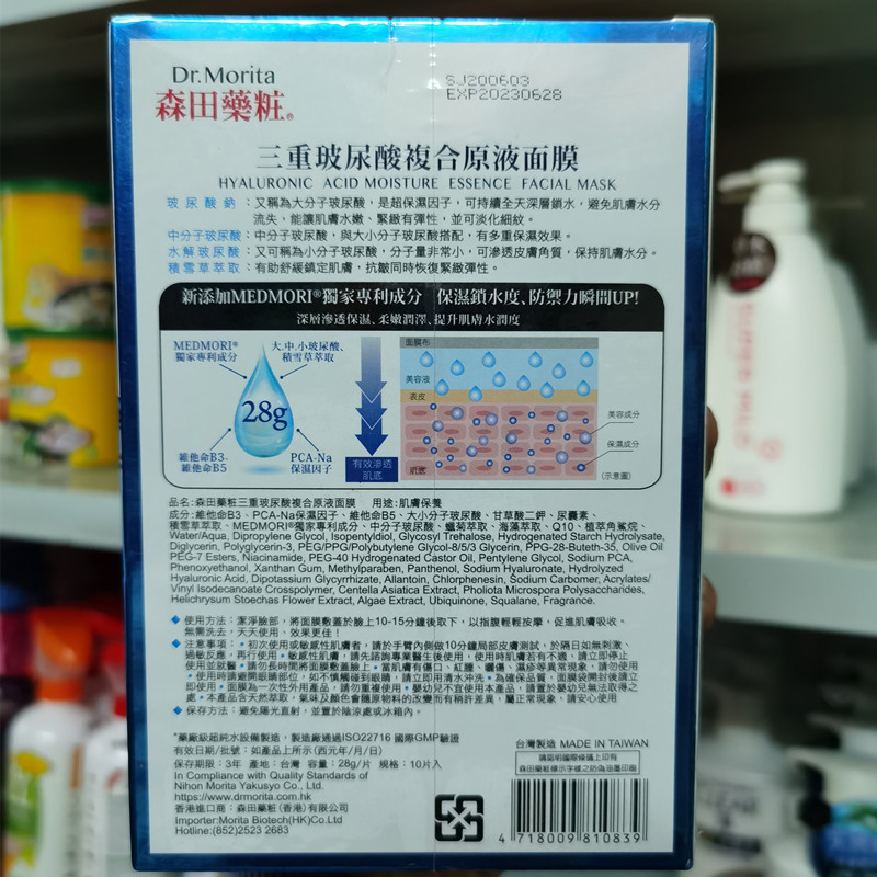 香港购森田药妆蚕丝面膜 森田三重玻尿酸复合原液面膜 润透肌保湿