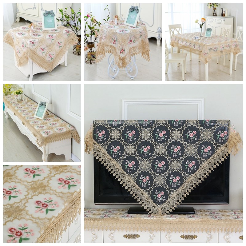 现货速发蕾丝盖巾桌布电视柜电视机组合罩圆方桌盖布液晶防尘罩壁