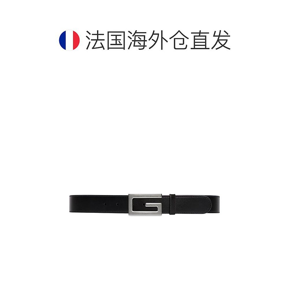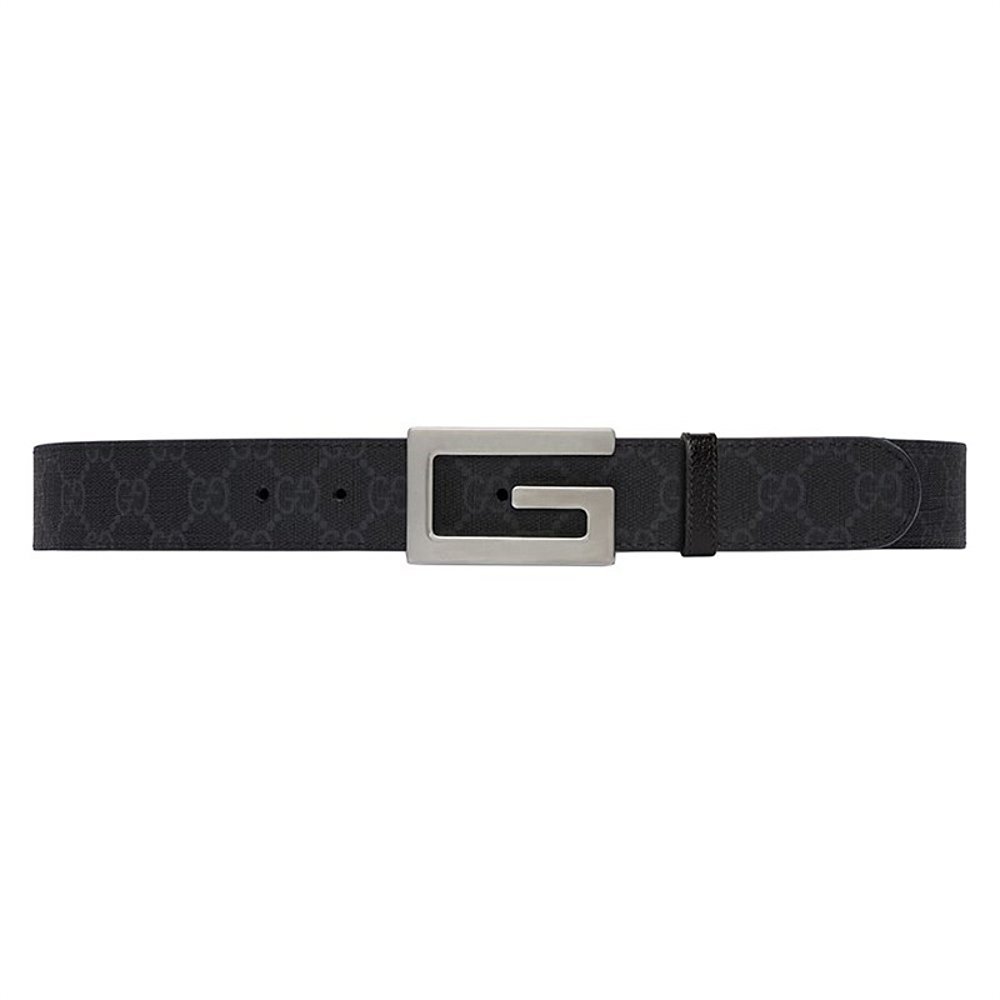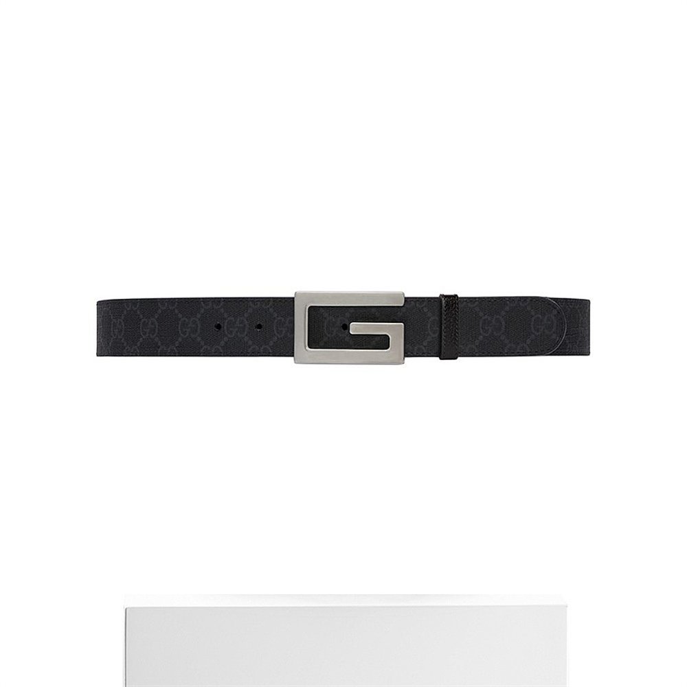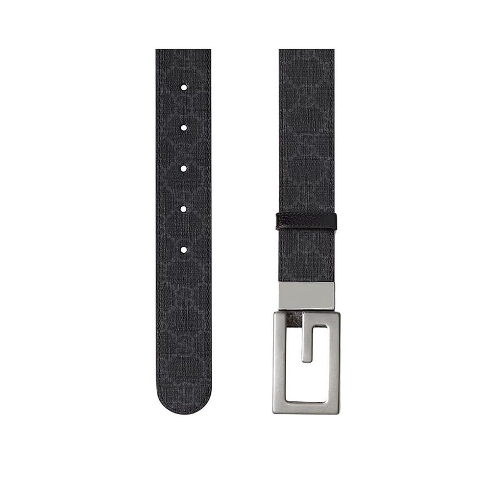 自营Gucci/古驰男士帆布黑色简约时尚百搭老花方扣双面款腰带