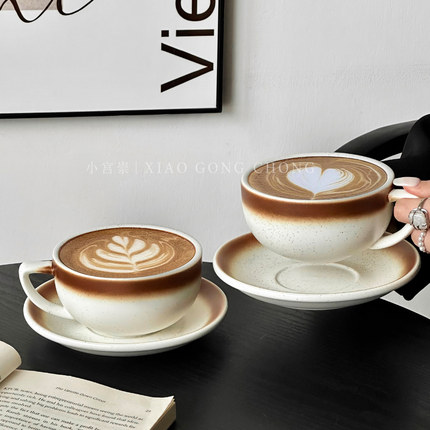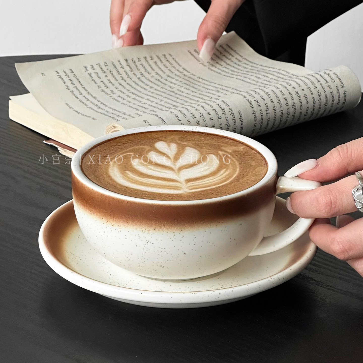 复古陶瓷咖啡杯碟卡布奇诺拉花杯