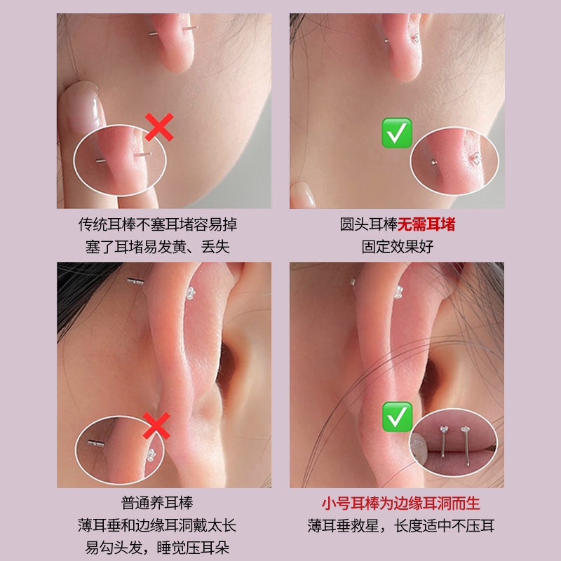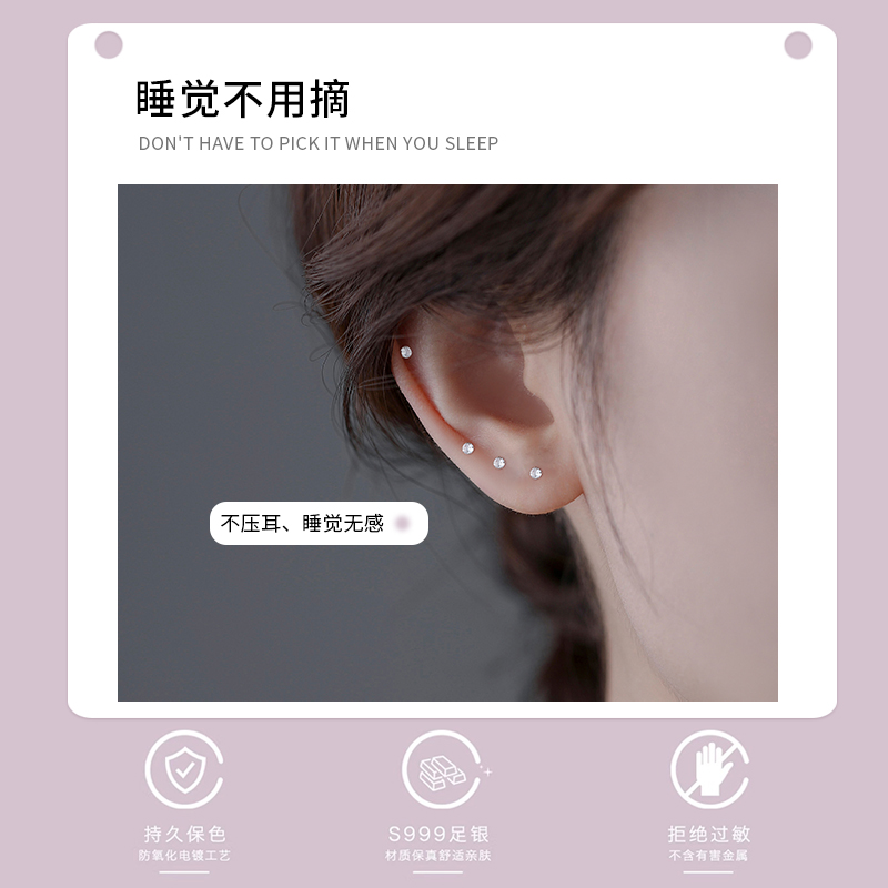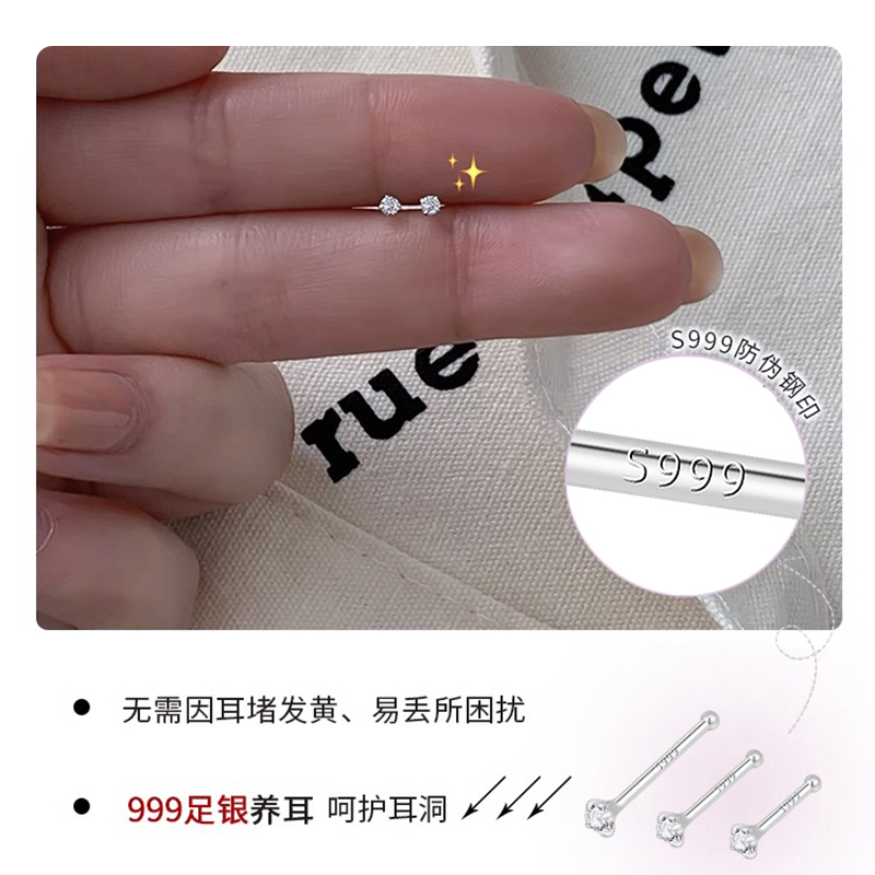999纯银养耳洞耳钉女睡觉免摘耳棒钻石耳骨钉小耳环防堵耳针耳饰
