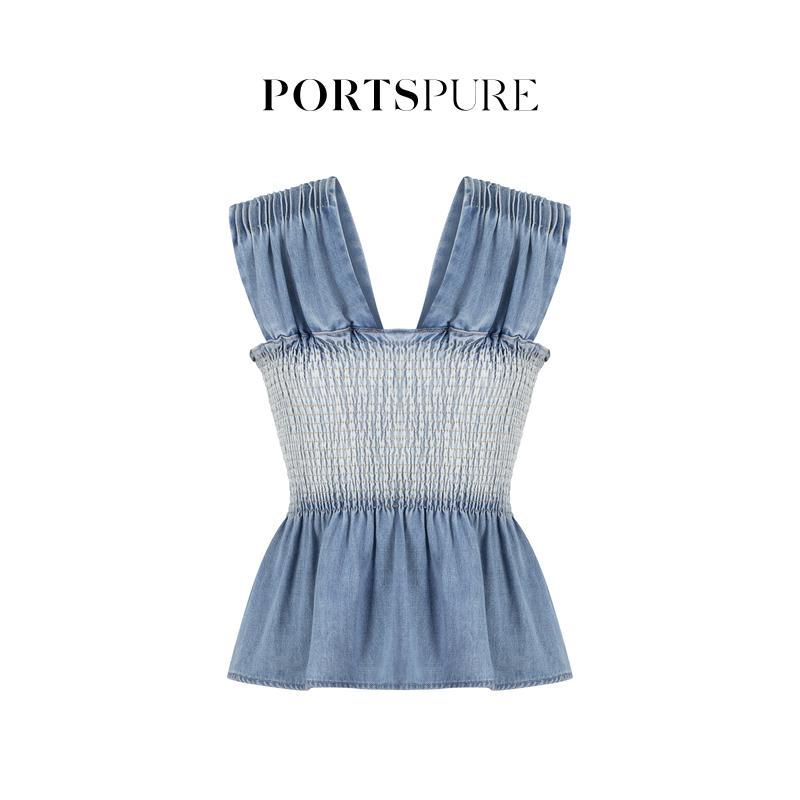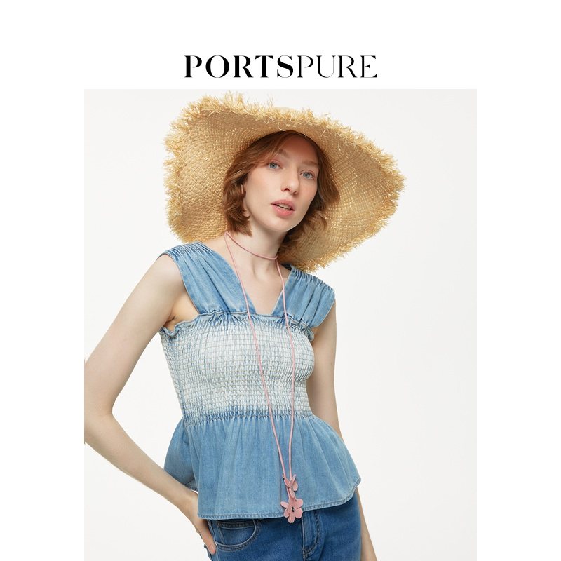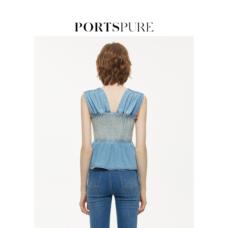 【丁达尔穿搭】宝姿PORTSPURE女装百搭甜美牛仔收腰无袖吊带背心