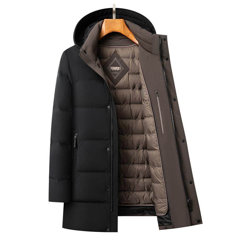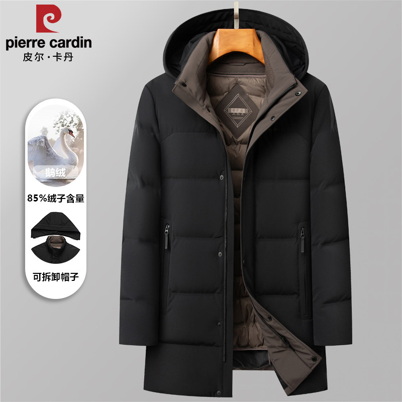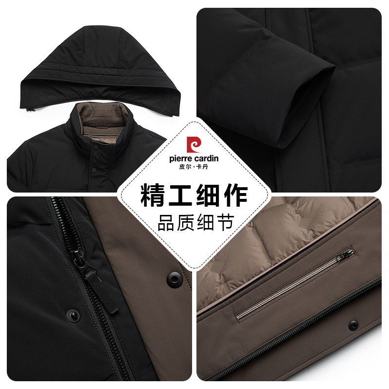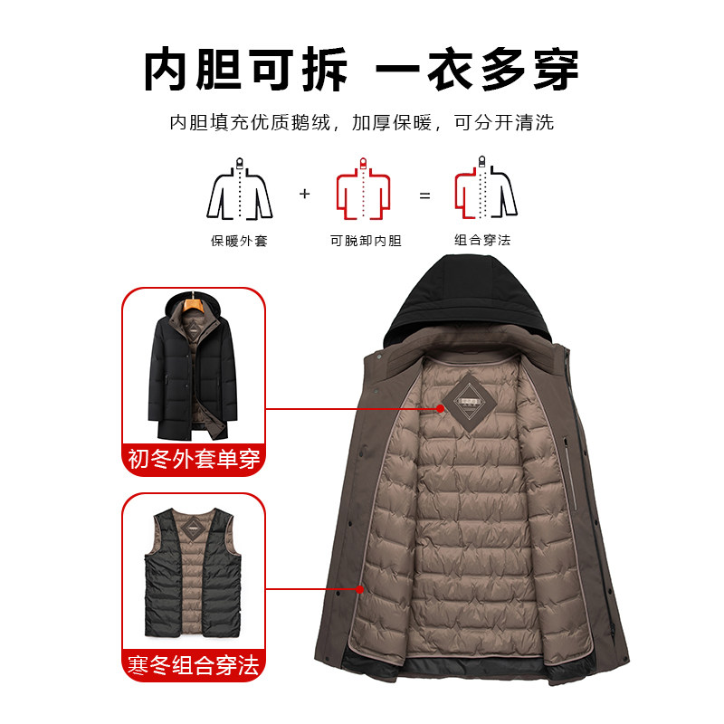 皮尔卡丹中长款连帽可拆卸鹅绒内胆加厚羽绒服男士冬季休闲爸爸装