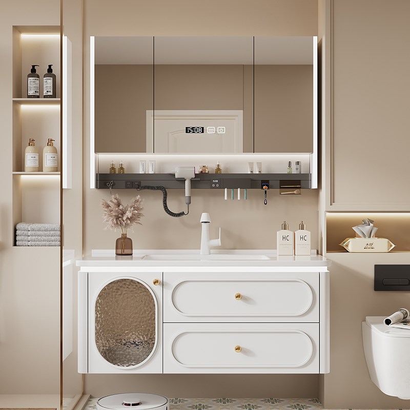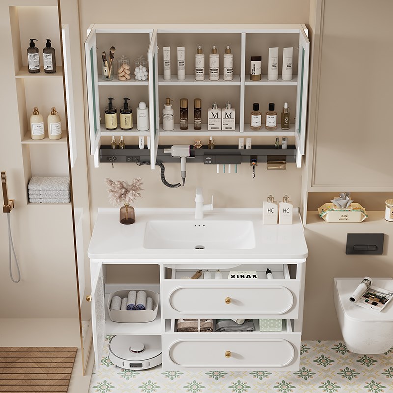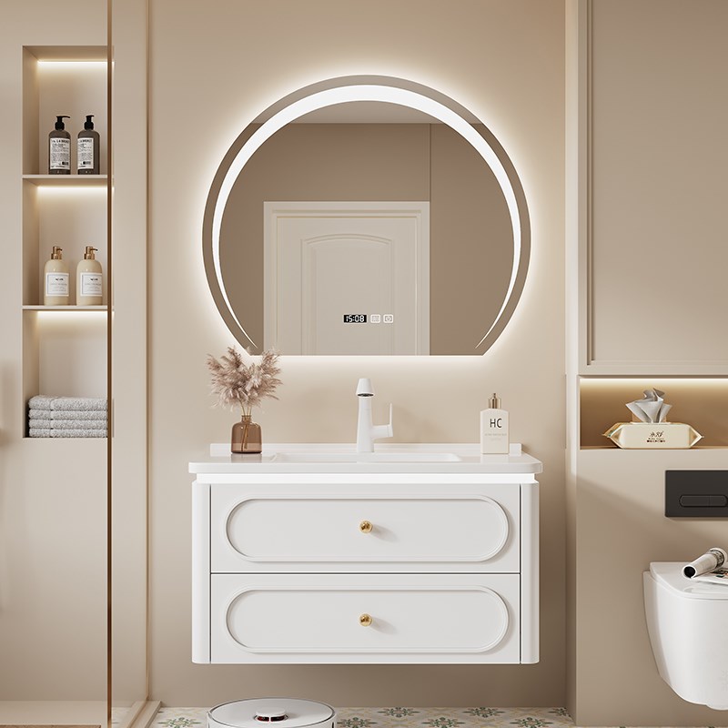 法式奶油风烤漆浴室柜镜柜组合卫生间陶瓷一体洗脸盆洗漱台洗手盆