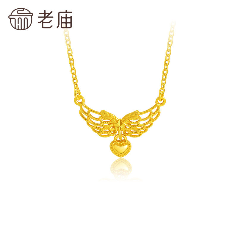 老庙足金爱心项链5G天使之翼
