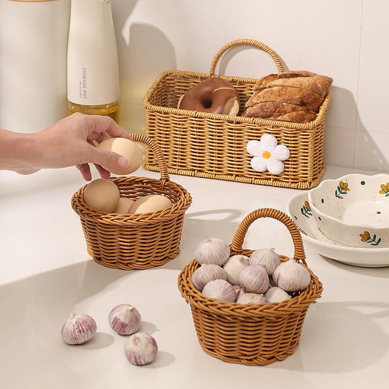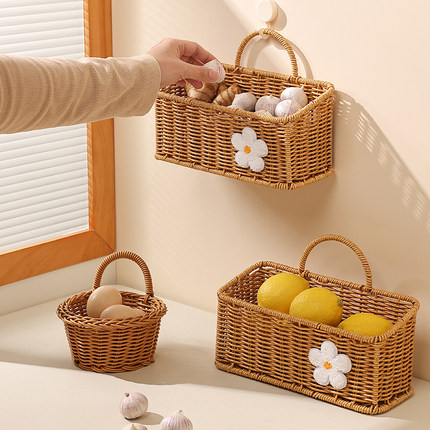 厨房放姜蒜收纳篮子壁挂式仿藤编织小挂篮大葱蒜头鸡蛋置物筐神器