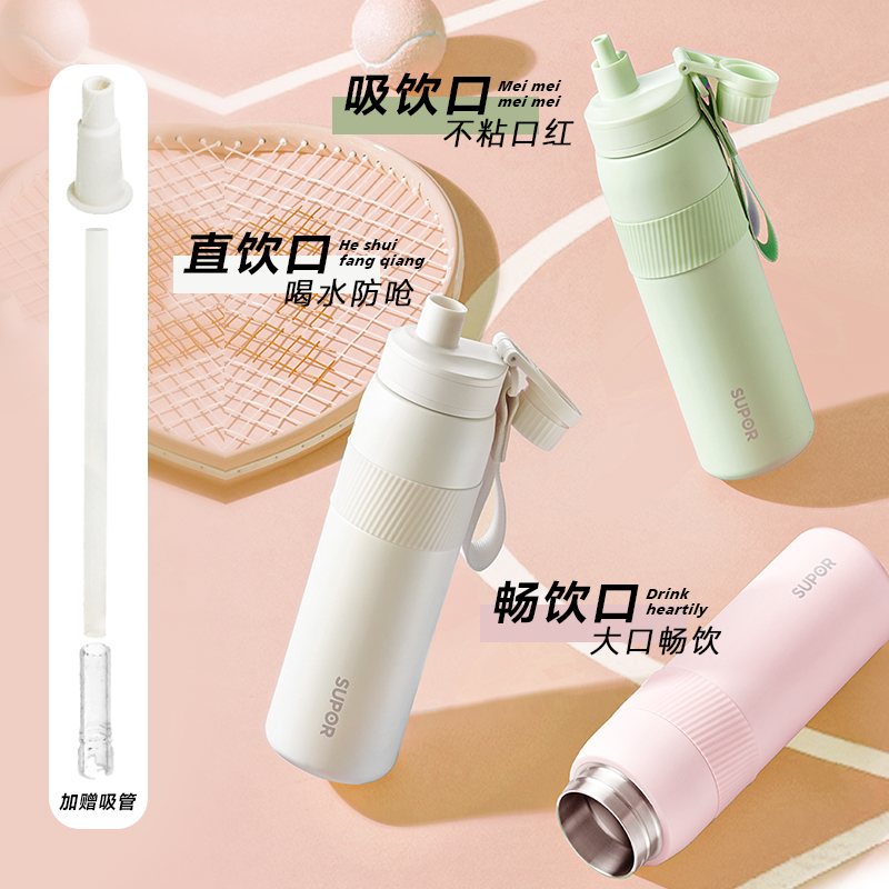 苏泊尔吸管保温杯女生高颜值2025新款水杯大容量学生上学专用杯子
