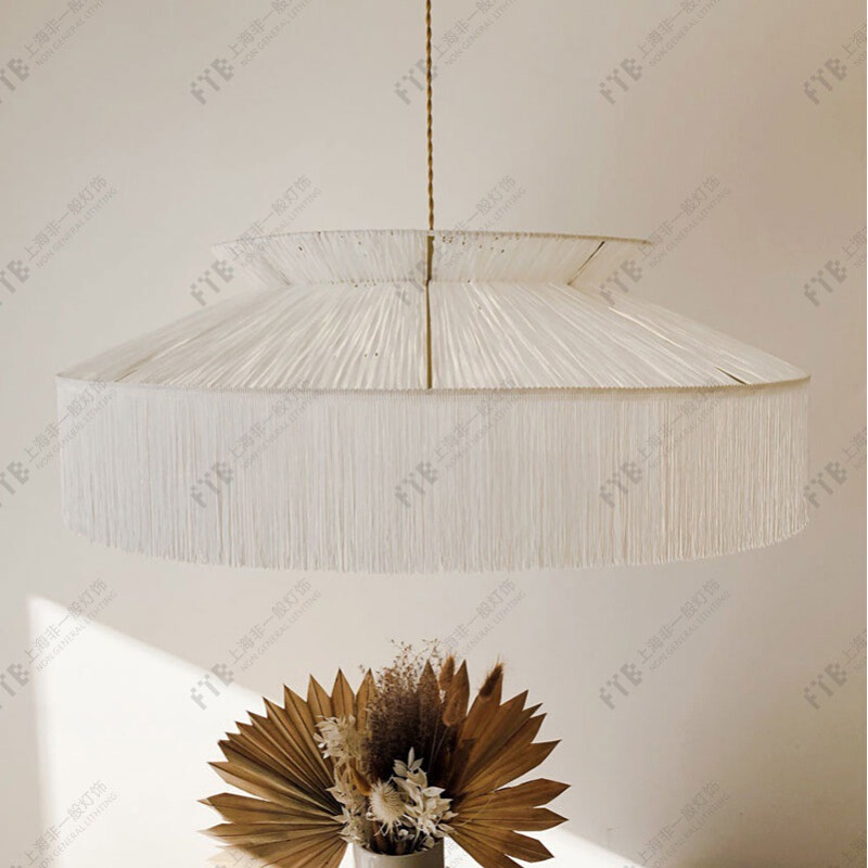上海简约现代时尚拉菲草流苏餐厅吊灯客厅民宿酒店别墅样板房灯具