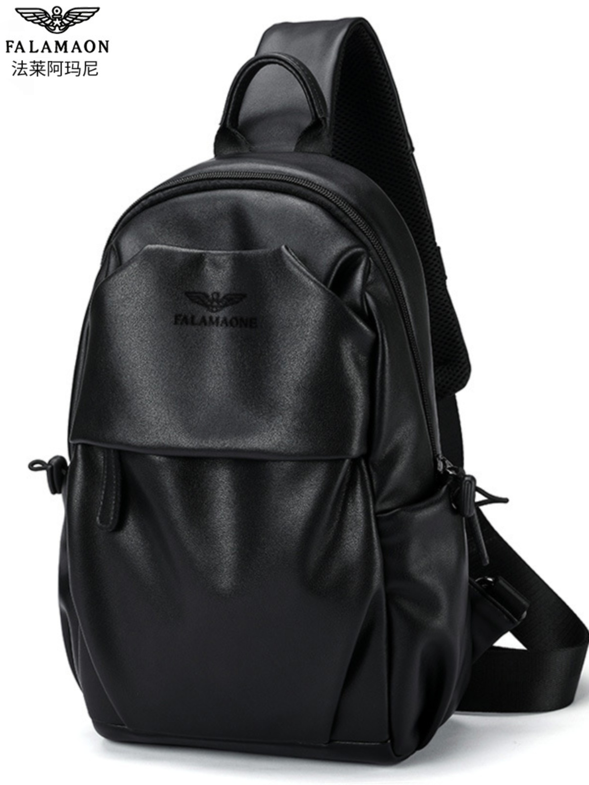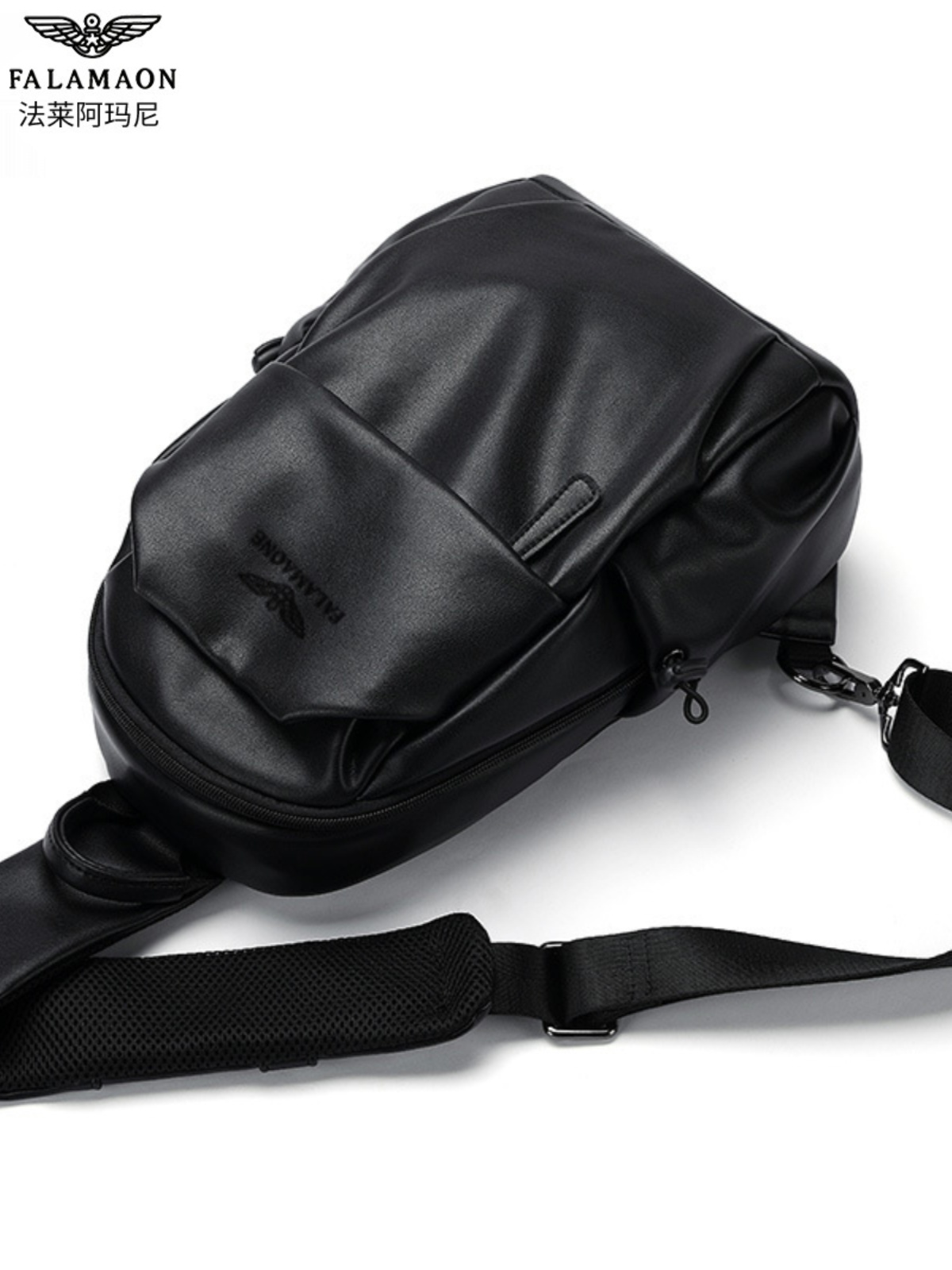 正品法莱阿玛尼男士真皮胸包轻奢简约单肩背包斜挎包时尚百搭男包