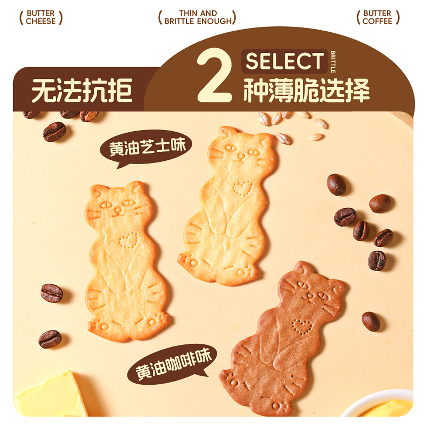 奥力给黄油猫酪饼干小猫薄脆曲奇芝士咖啡早餐休闲解馋小吃零食品