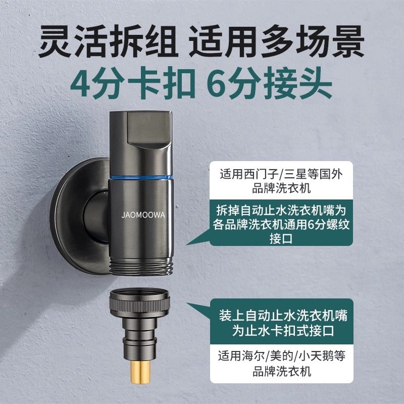 全铜洗衣机水龙头自动止水阀专用卡扣式水嘴接头滚筒自动46分通用