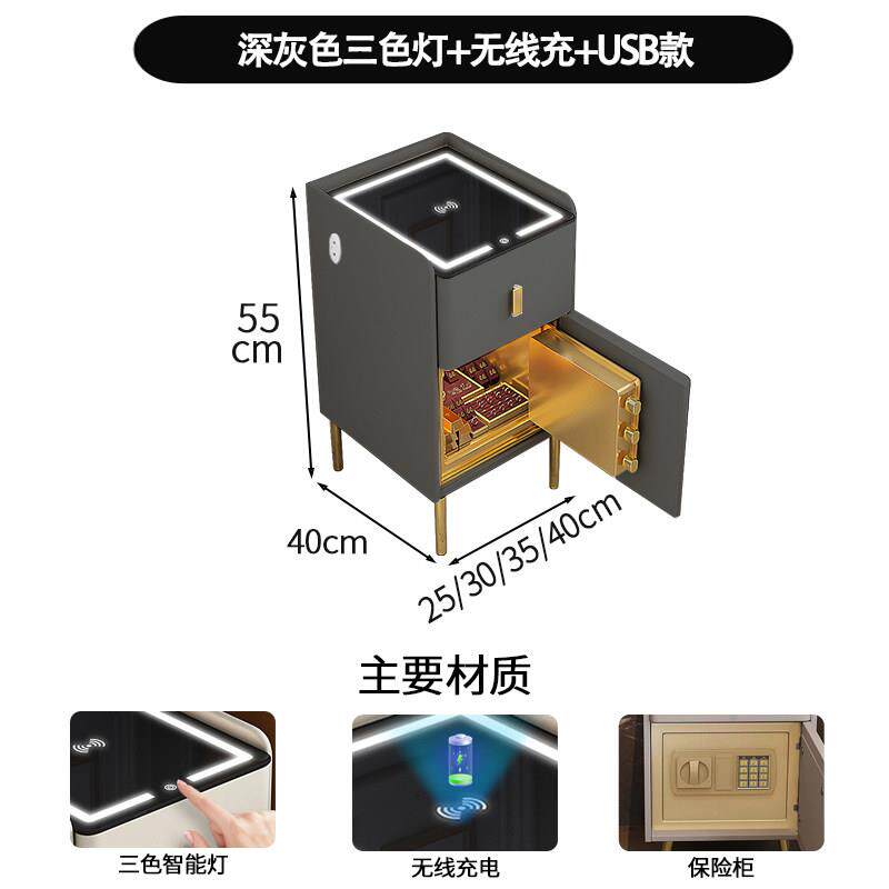 实木床头柜保险箱一体智能小型简约现代带家用防盗极窄多功能卧室