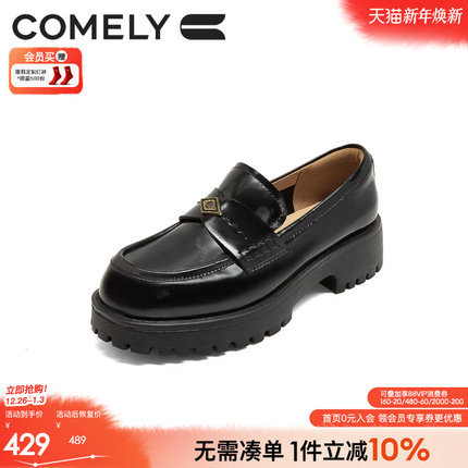 康莉粗跟乐福鞋女2026年春秋新款圆头英伦风黑色百搭通勤JK小皮鞋