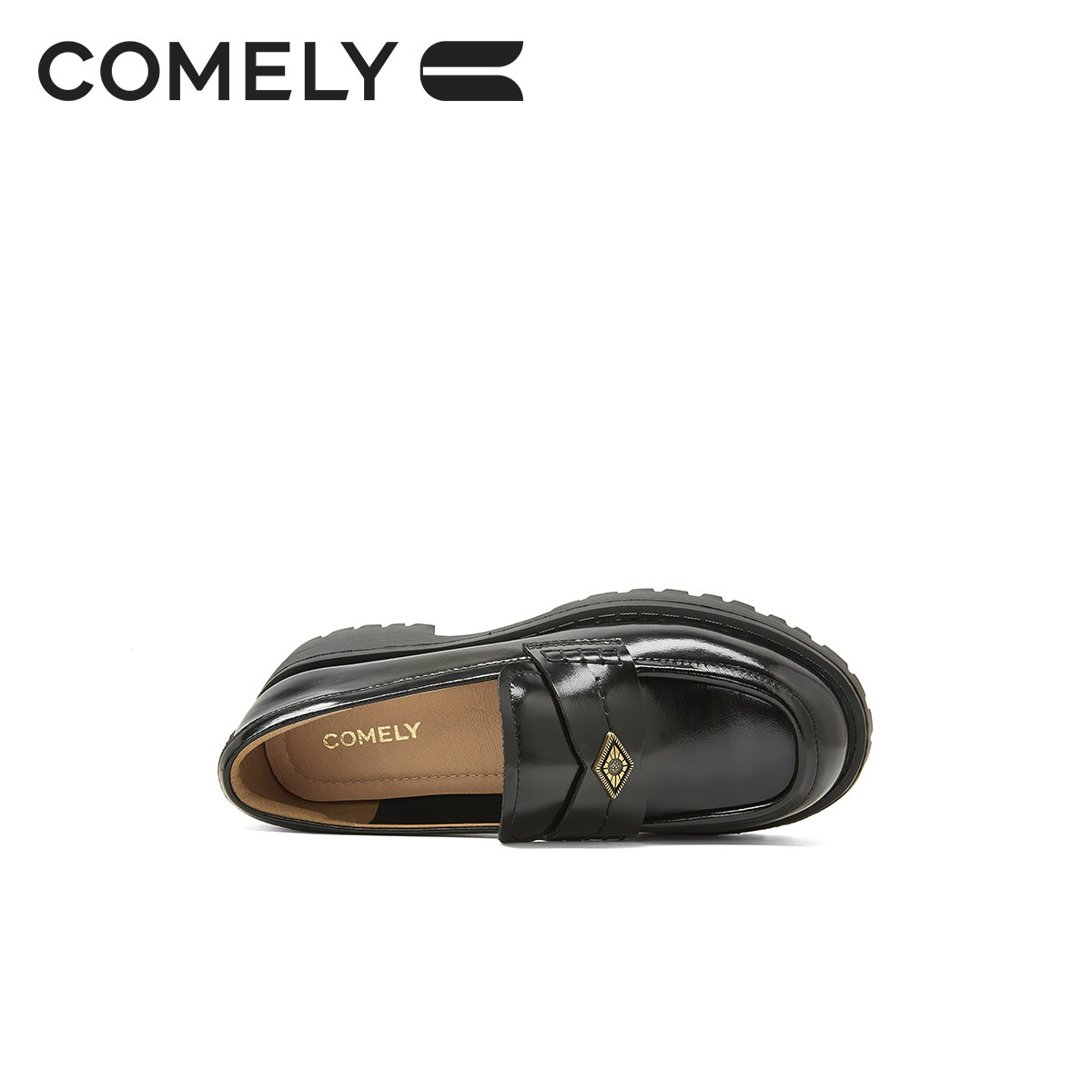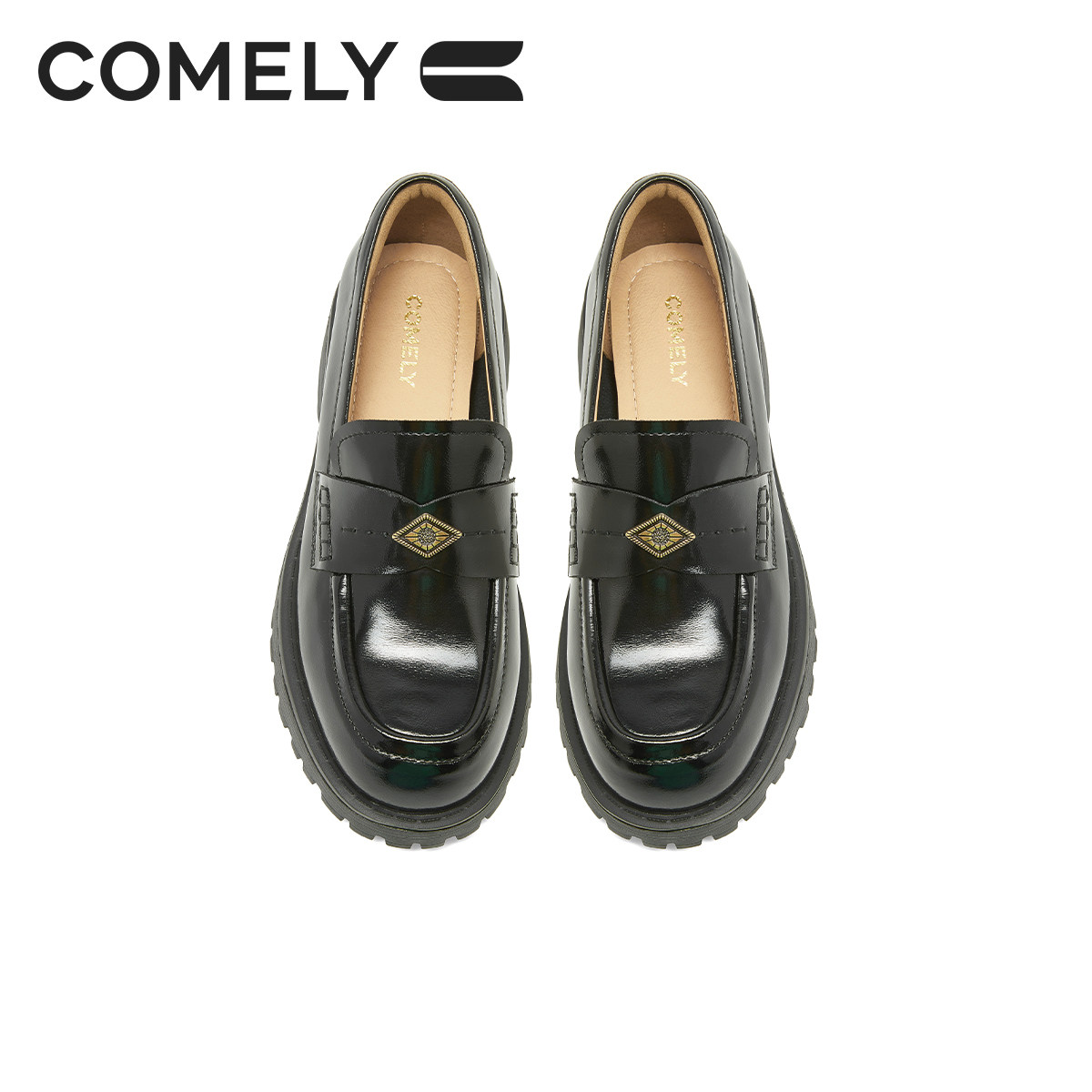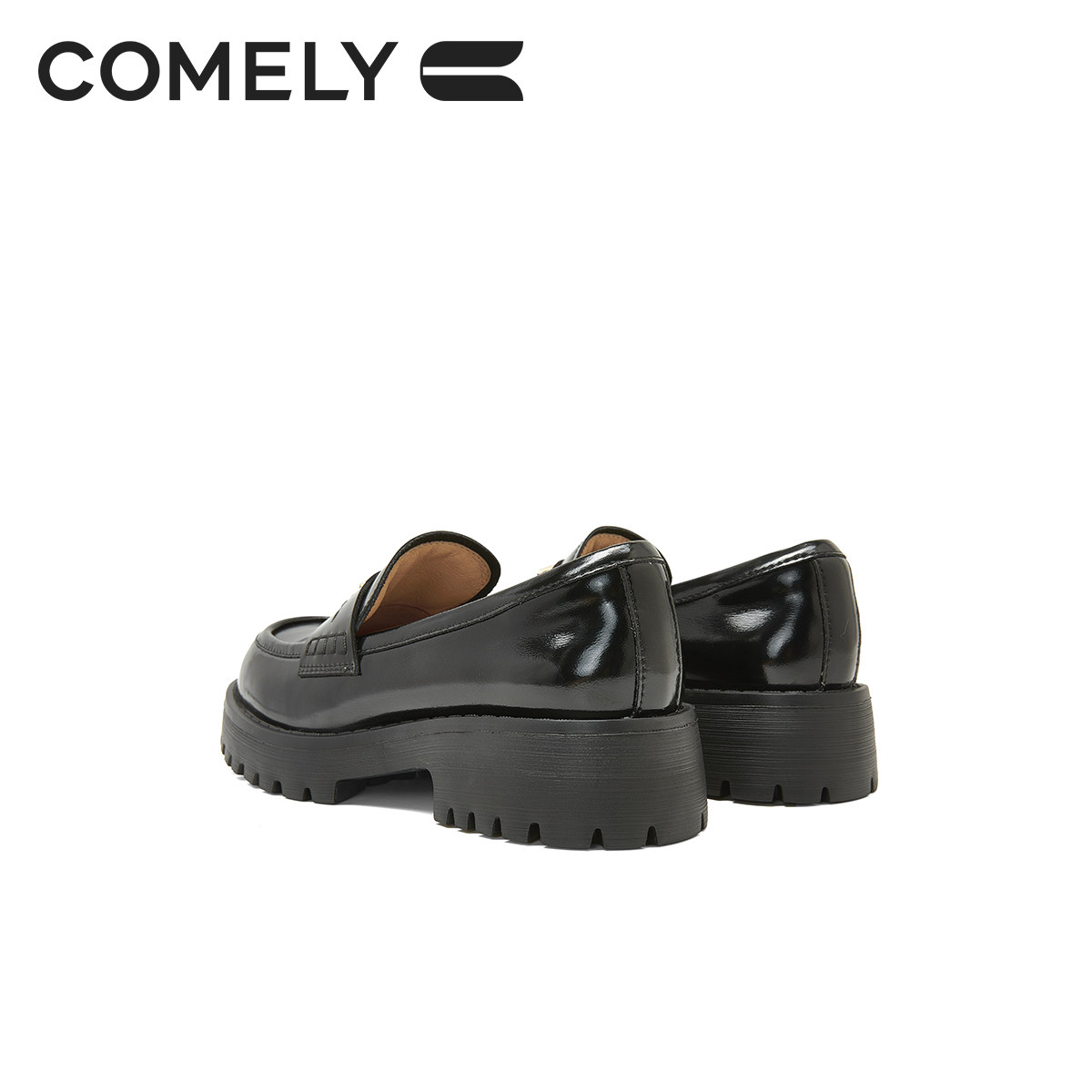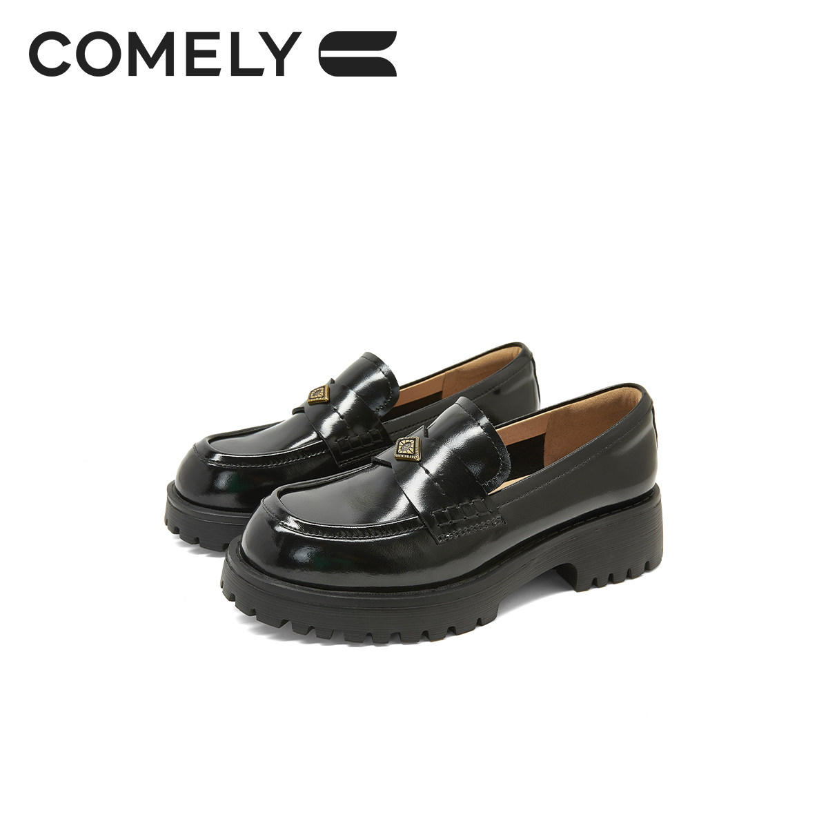 康莉粗跟乐福鞋女圆头