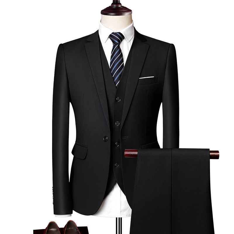 上班服男士西服三件套大尺码马甲外套西裤婚礼西装白色修身礼服套