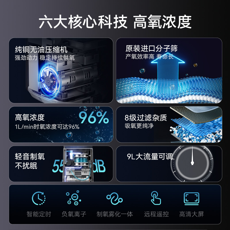 奥克斯9L家用制氧机老人吸氧机孕妇氧气机雾化小型便携式车载高原