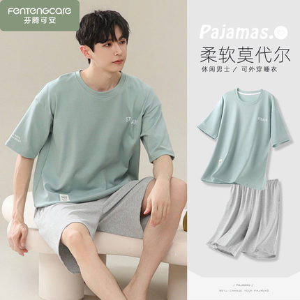 夏季男士睡衣莫代尔棉绸男款冰丝男式大码青少年网红风家居服夏天