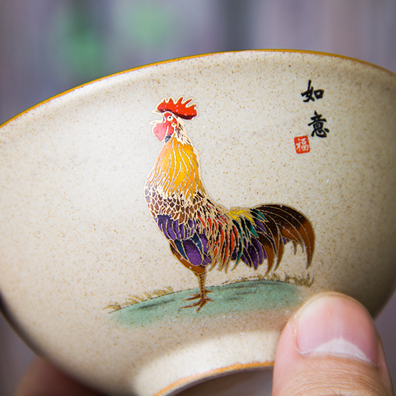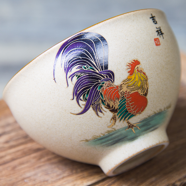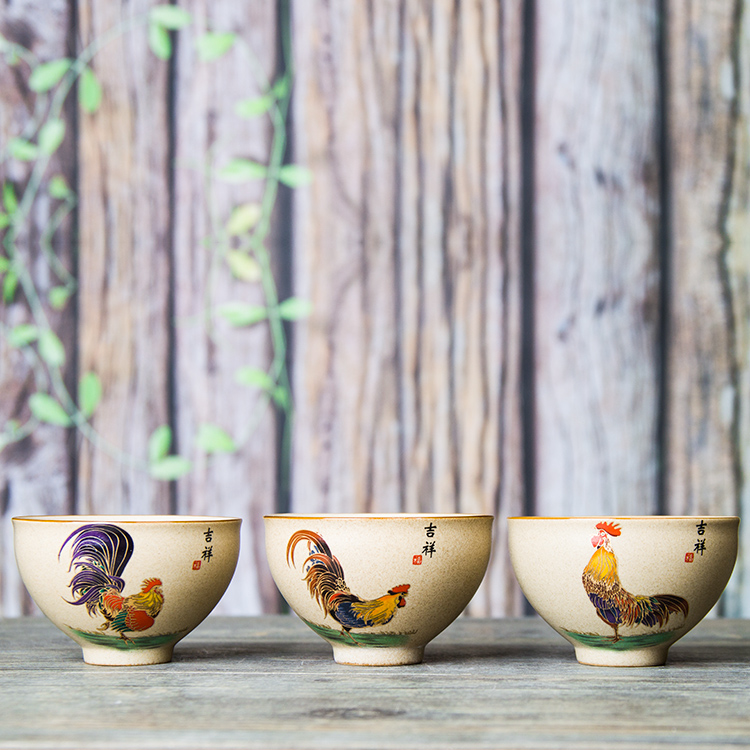 陶瓷公鸡品茗杯大杯个人杯手绘家用泡茶杯主人杯粗陶功夫茶具单杯