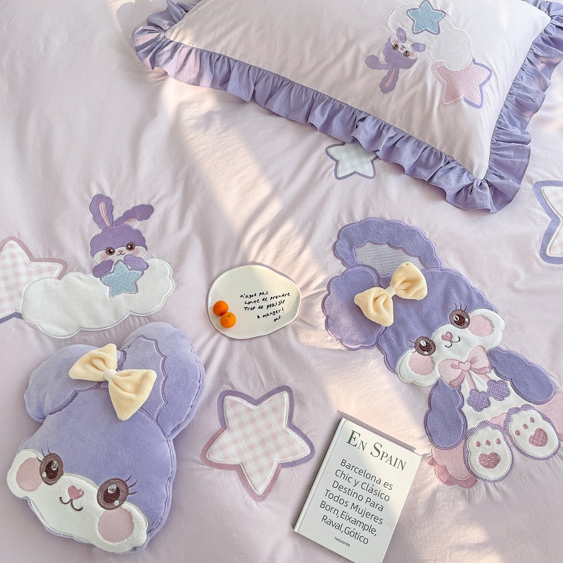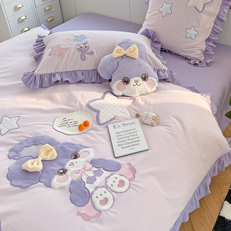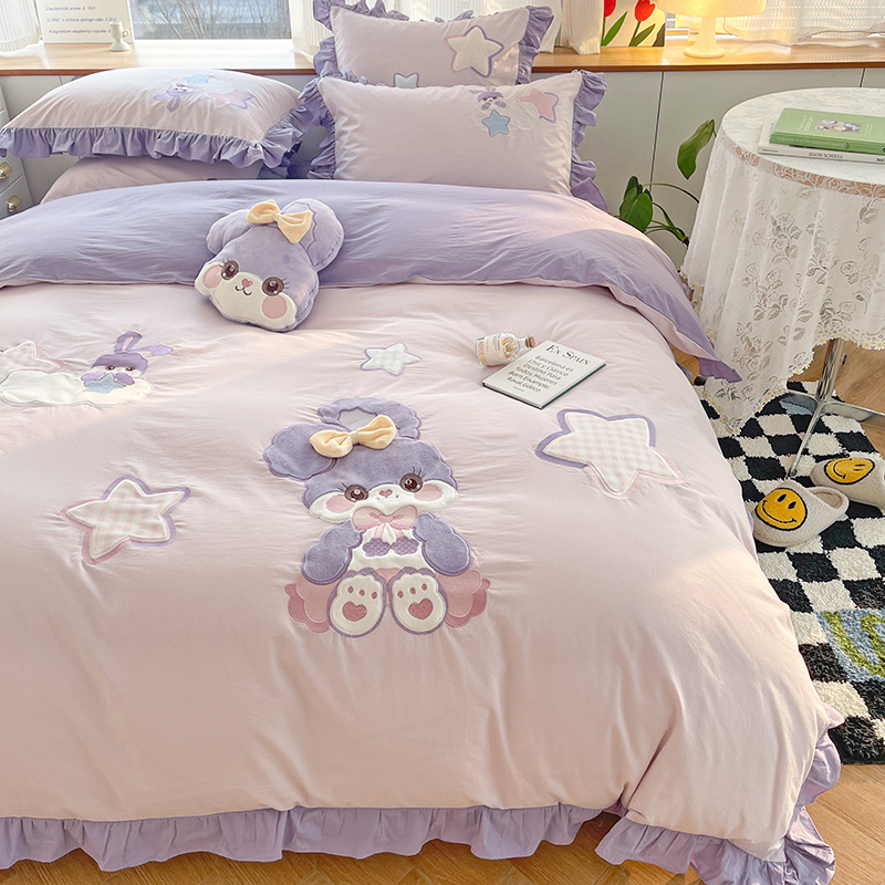 卡通儿童水洗棉四件套纯棉贴布绣被套全棉可爱公主风女孩床单床品