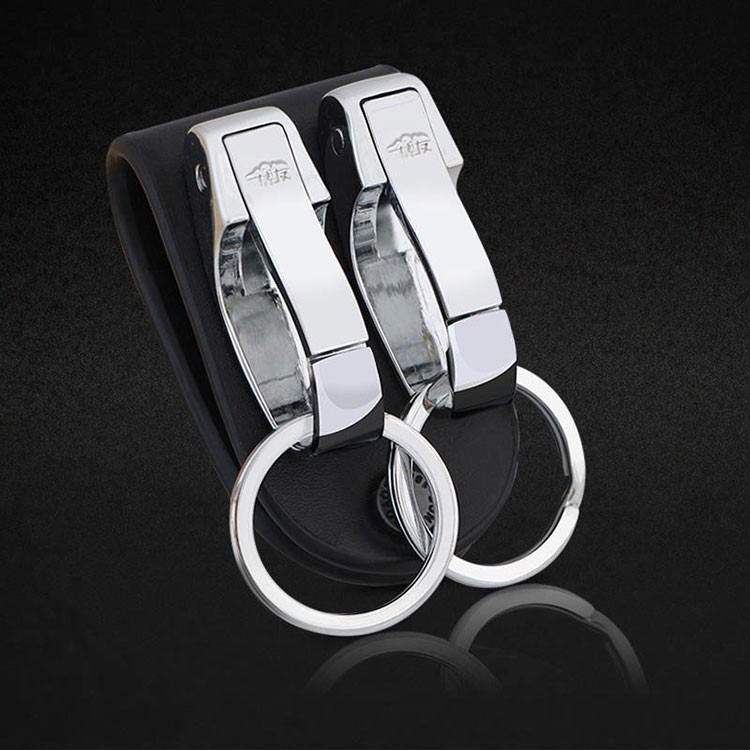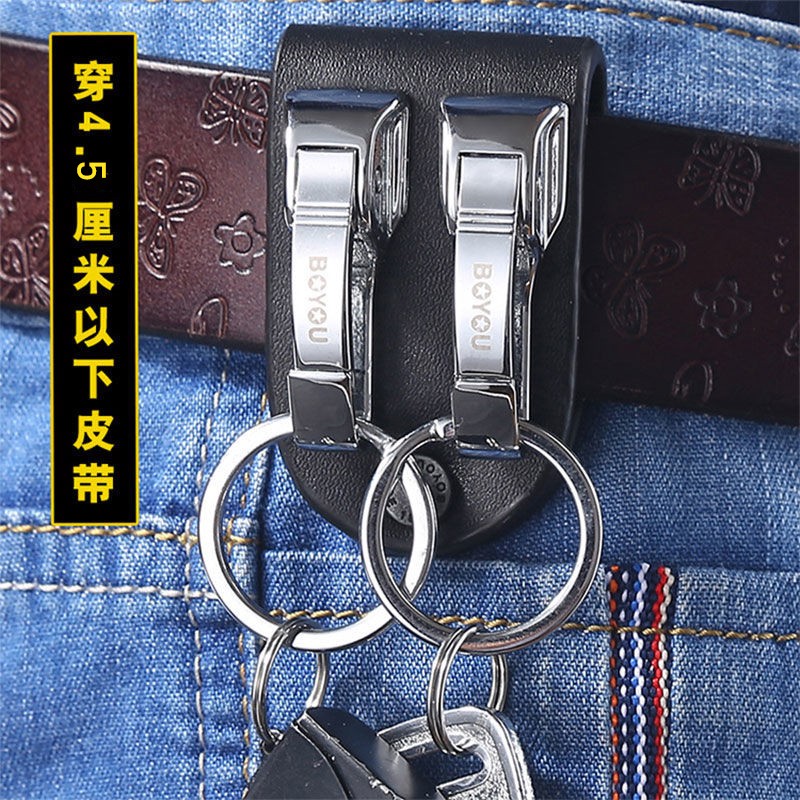博友双层牛皮双环穿皮带钥匙扣男士腰挂汽车腰式扣创意真皮钥匙链