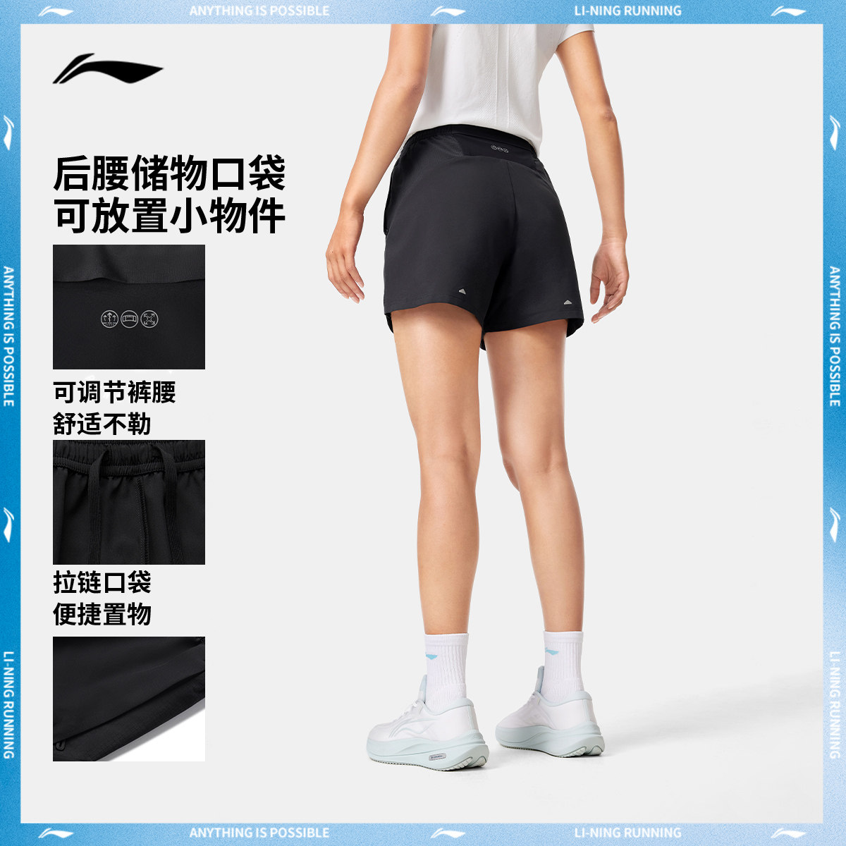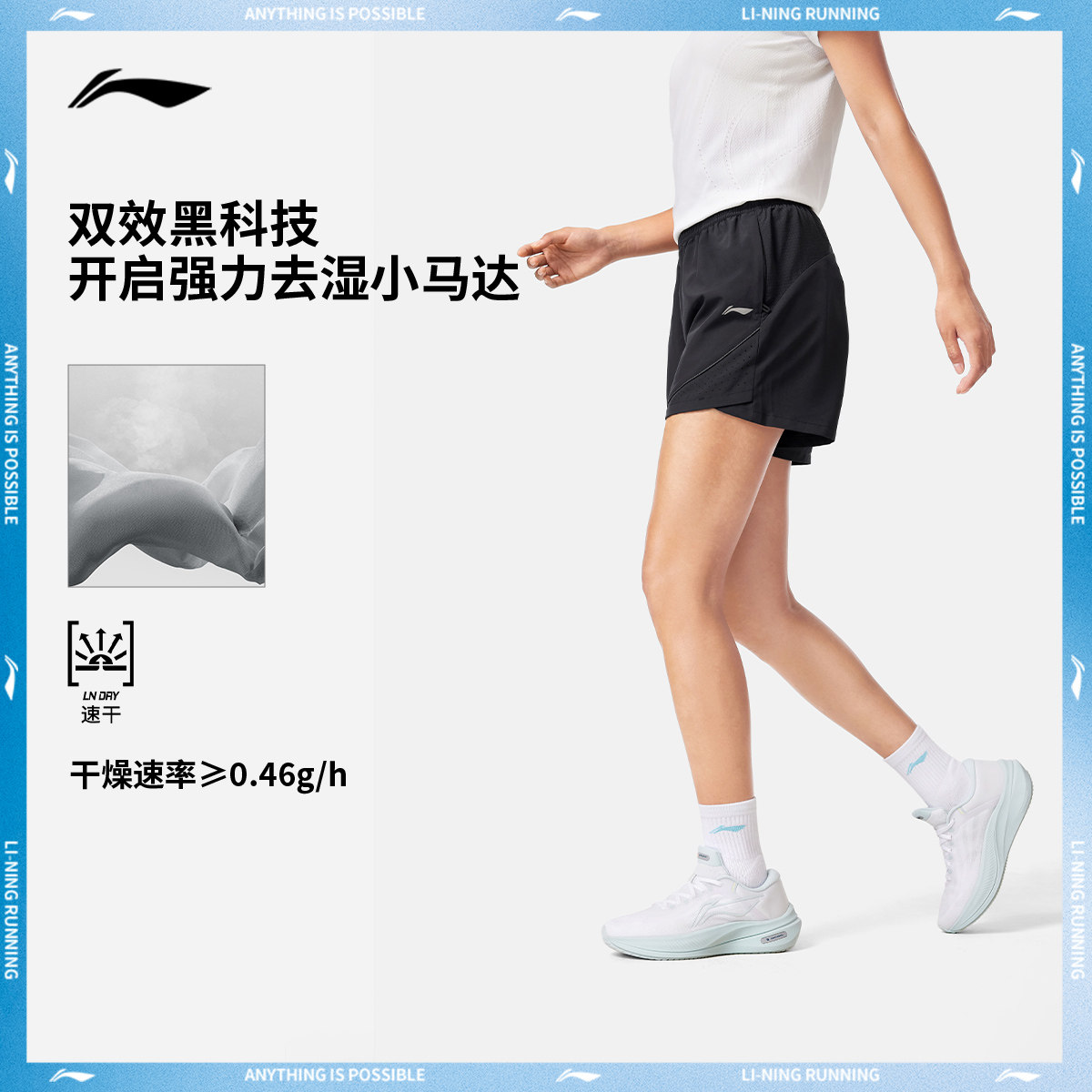 李宁短裤女士新款速干运动短裤