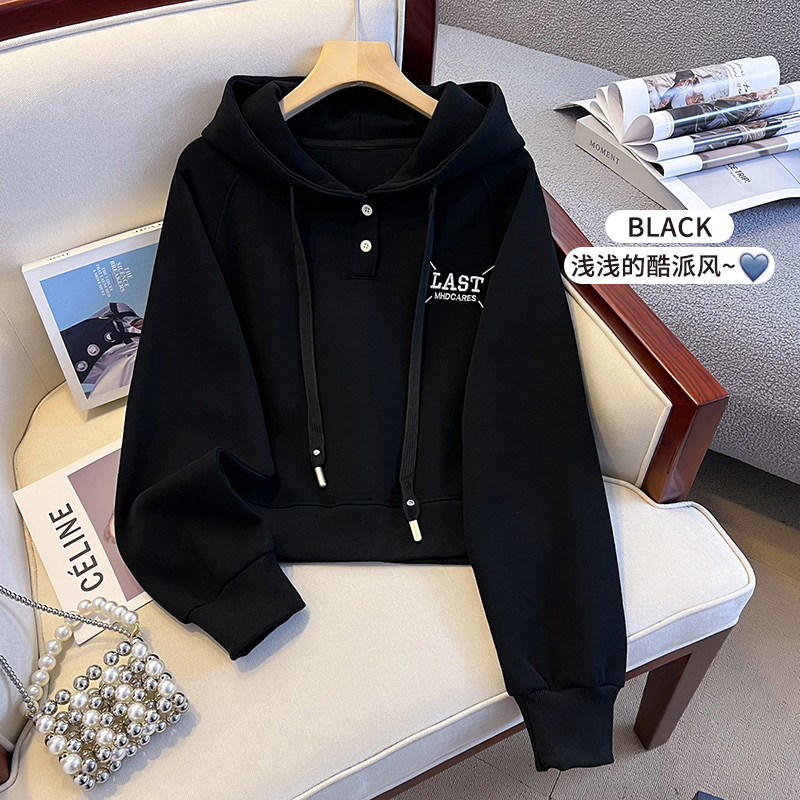 初中女生学院风连帽卫衣春秋新款小个子高中学生宽松运动短款卫衣