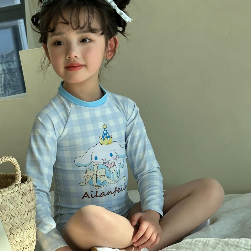 儿童泳衣连体平角儿童泳衣女玉桂狗保守游泳训练泳衣拉链春夏女童