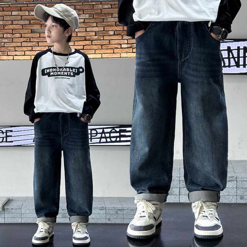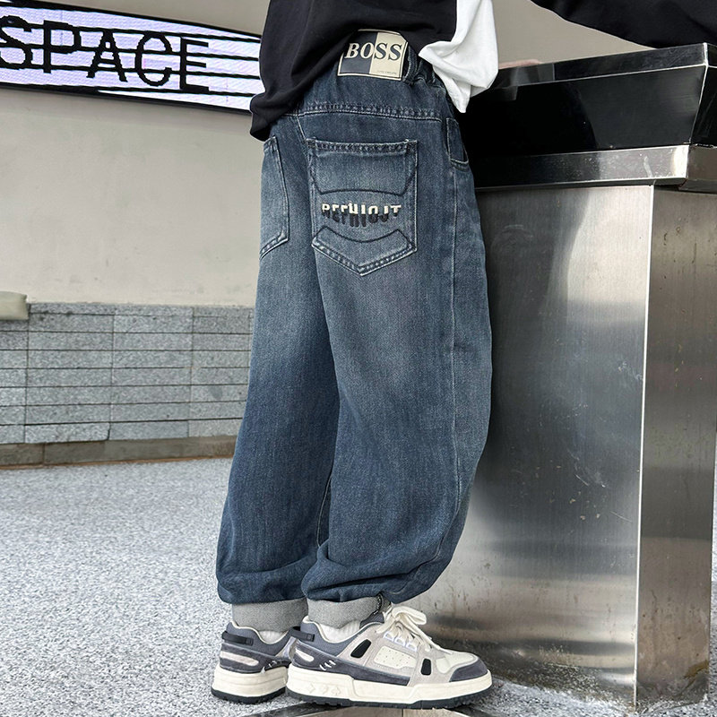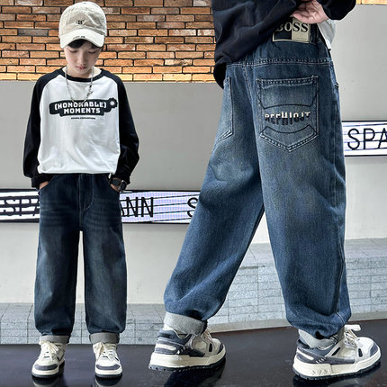 男童牛仔裤秋冬款2025新款儿童裤子加绒冬装长裤中大童宽松休闲裤