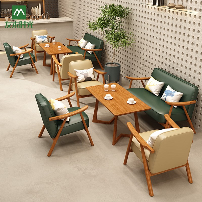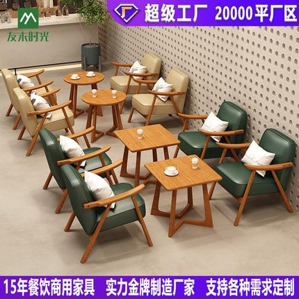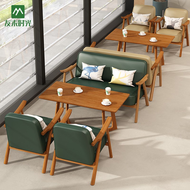 休闲咖啡厅桌椅组合甜品休息区书吧奶茶店桌椅商用实木洽谈沙发椅
